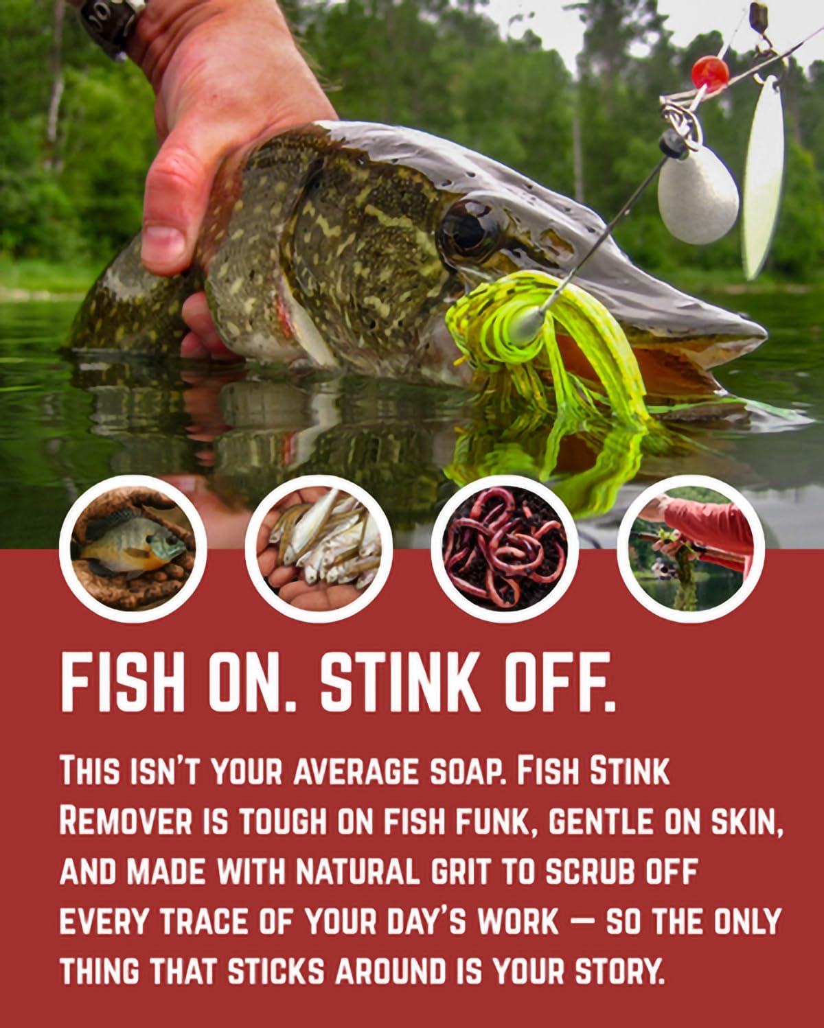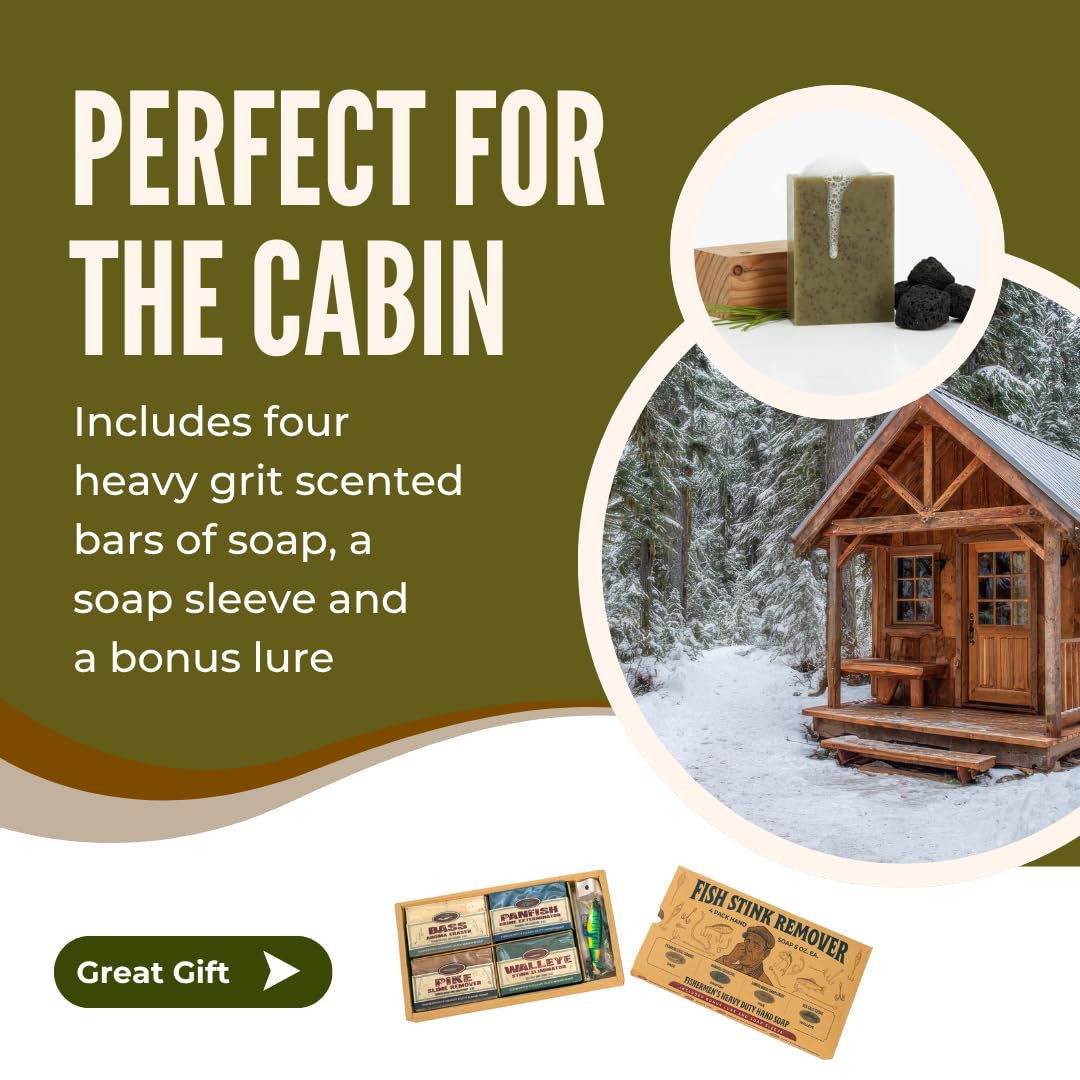 Looking for a fun, practical, and unique fishing gift with a vintage twist? The DockTime Fish Stink Remover 4-Pack Gift Set blends nostalgic style with everyday usefulness for anglers of all ages. Each kit includes four 5 oz heavy-grit bar soaps made with natural ingredients like Walnut Husk and Essential Oils, specially formulated to wash away fish slime, odors, and grime after a successful day on the water. Each soap features a vintage-inspired label and its own distinct scent: Walleye Stink Eliminator (Sea Salt & Cedar), Bass Aroma Eraser (Frankincense & Orange), Pike Slime Remover (Sandalwood & Grapefruit), and Panfish Grime Exterminator (Bamboo & Charcoal). Packaged in a retro-themed gift box, this set also comes with a reusable soap sleeve for convenience and a bonus fishing lure—a playful extra ready for the tackle box. Ideal for Christmas, Valentine's Day, Father’s Day, birthdays, retirements, or any special occasion, this clever yet practical soap set makes a great gift for fishermen who appreciate both humor and functionality. A perfect addition to any angler’s gear collection. Includes fishing lure and soap sleeve.