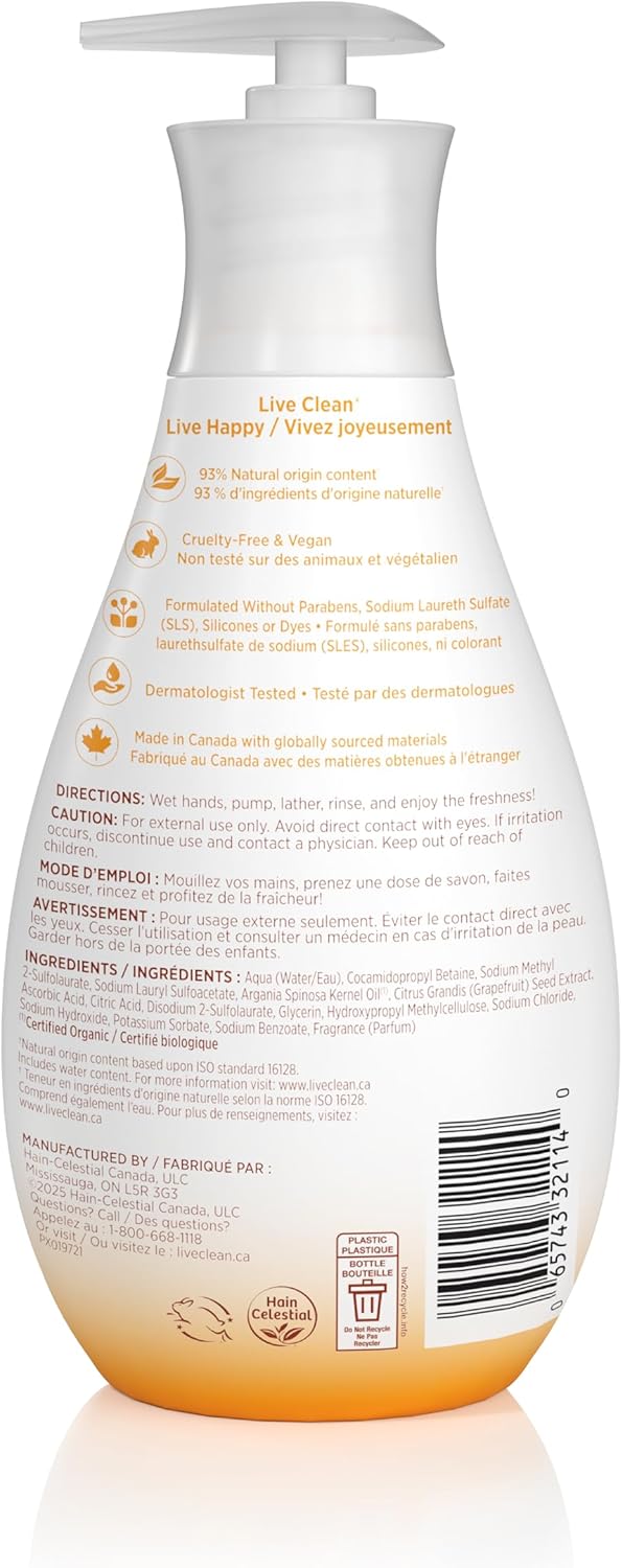 Live Clean Argan Oil Replenishing Liquid Hand Soap is Made With Moroccan Argan Oil, Grapeseed Oil and Olive Oil to Nourish and Moisturize Skin. Rich in Essential Fatty Acids and Antioxidants, Argan Oil is Famed for Its High Concentrations of Vitamin E and Helps Protect the Skin's Moisture Barrier. Our Vegan Formula Gently Cleanses Skin, Leaving Hands Feeling Soft and Smooth. This Hand Soap Is 98% Plant-Based, Vegan, Not Tested on Animals and Free From Parabens, Sulfates and Harmful Chemicals. Includes One 17 Oz. Bottle of Live Clean Argan Oil Replenishing Liquid Hand Soap. Founded in 2007, the Live Clean Brand was Created With a Simple Vision: To Create High-Performance Skin and Hair Care Products That Celebrated Beauty While Honoring the Earth. We Believe That Living Clean Is not Just About What We Eat, but it’s Also About the Products and Ingredients We Put on Our Bodies. Live Clean Products Harness the Beautifying Power in Plant-Based Ingredients for Gentle and Effective Products That Are Safe for You and the Environment.