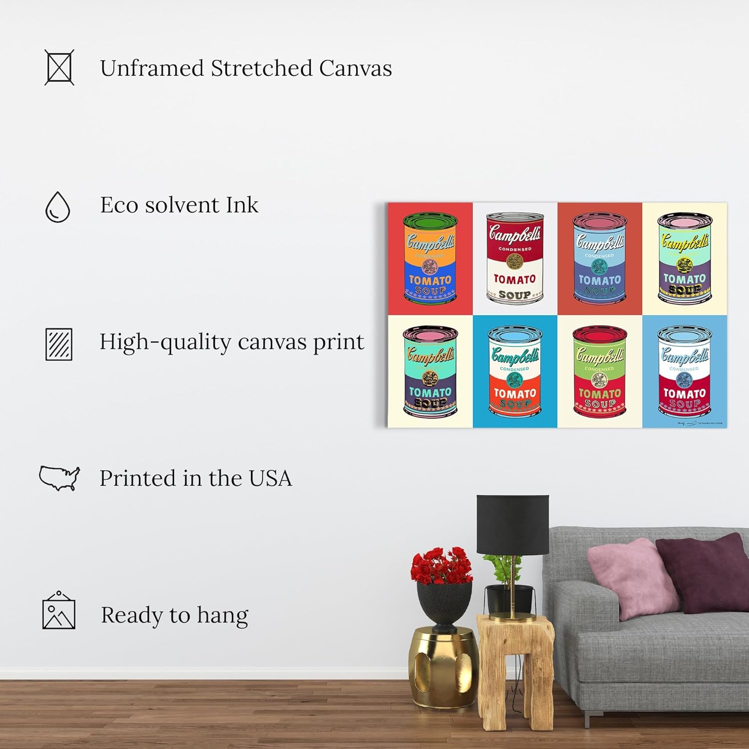 Elevate Your Space with Iconic Style Infuse your living space with the timeless allure of Andy Warhol's iconic wall art artworks. This canvas wall print called "Campbell's Soup Cans" captures the essence of abstract and modern minimalistic room decor design. Presented as a gallery wrapped stretched canvas, this colorful wall art for bedroom adds a touch of sophistication to any room like a canvas wall art for living room wall decor, dorm decor, kitchen wall art or bedroom wall art decor. Artistic Versatility Transcending boundaries, this Andy Warhol wall art canvas, available in 6 different sizes (you can choose one from the product listing options), seamlessly complements diverse interior styles. From Chanel pictures wall decor to black art wall decor, this versatile canvas print effortlessly adapts to your aesthetic preferences. Embrace the hypebeast wall art trend or indulge in the understated elegance colorful wall decor – the possibilities are endless. Ideal for the wall pictures for living room decor or western home decor to create a stunning focal point, these wall textured wall art prints invite contemplation and appreciation of Andy Warhol's pioneering techniques. The pre-installed hooks ensure hassle-free wall hanging, allowing you to showcase this preppy room decor in your desired location with ease A Thoughtful Present for All Occasions This colorful abstract wall art makes a thoughtful and meaningful present for occasions like birthdays, anniversaries, housewarming, weddings, and holidays. Its unique aesthetic appeals to a wide range of tastes, making it a versatile choice for loved ones who appreciate vintage art, retro art, modern wall art bedroom wall decor above bed, aesthetic room decor, retro art, dorm decor, neutral home decor, or girly room decor.