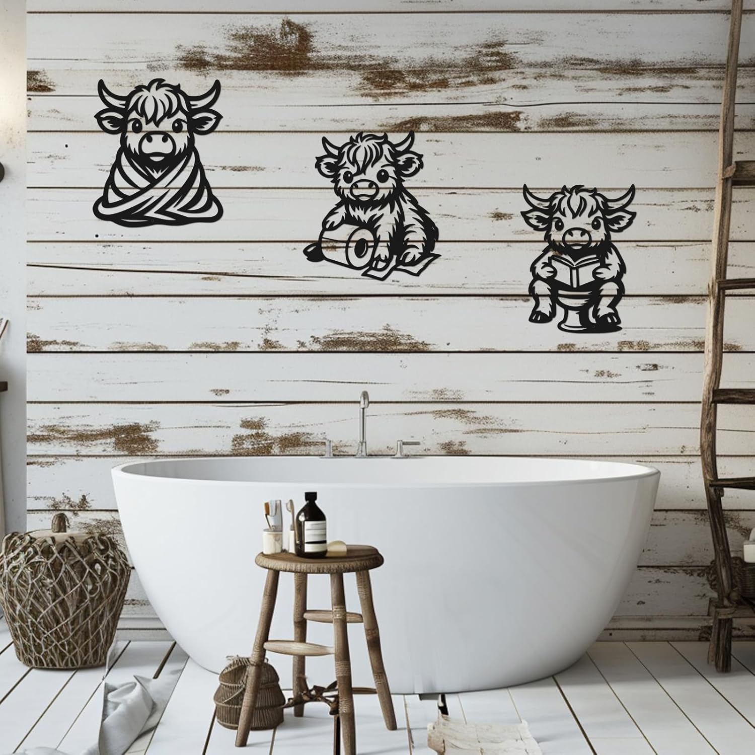 Features: Durable metal material: Our highland cow decorations from quality metal with a matte black finish, these decorations are built to last. The material is resistant to rust and fading, making it suitable for humid environments like bathrooms. The minimalist design ensures they remain timeless pieces that will integrate seamlessly with your decor for years to come. Thoughtful gift idea: This tasteful 3 piece highland cow decorations makes an exceptional and memorable housewarming or homewarming gift. It is also a nice present for birthdays, holidays, or for anyone who loves rustic charm, farm animals, or western themed decor. Specifications: Material: metal Color: black Size: Each highland cow wall decors about 13.78 x 13.78 inches / 35 x 35 cm Package includes: 3 x Highland cow wall decors Notes: Manual measurement, please allow slight errors on size. The color may exist a slight difference due to different screen displays