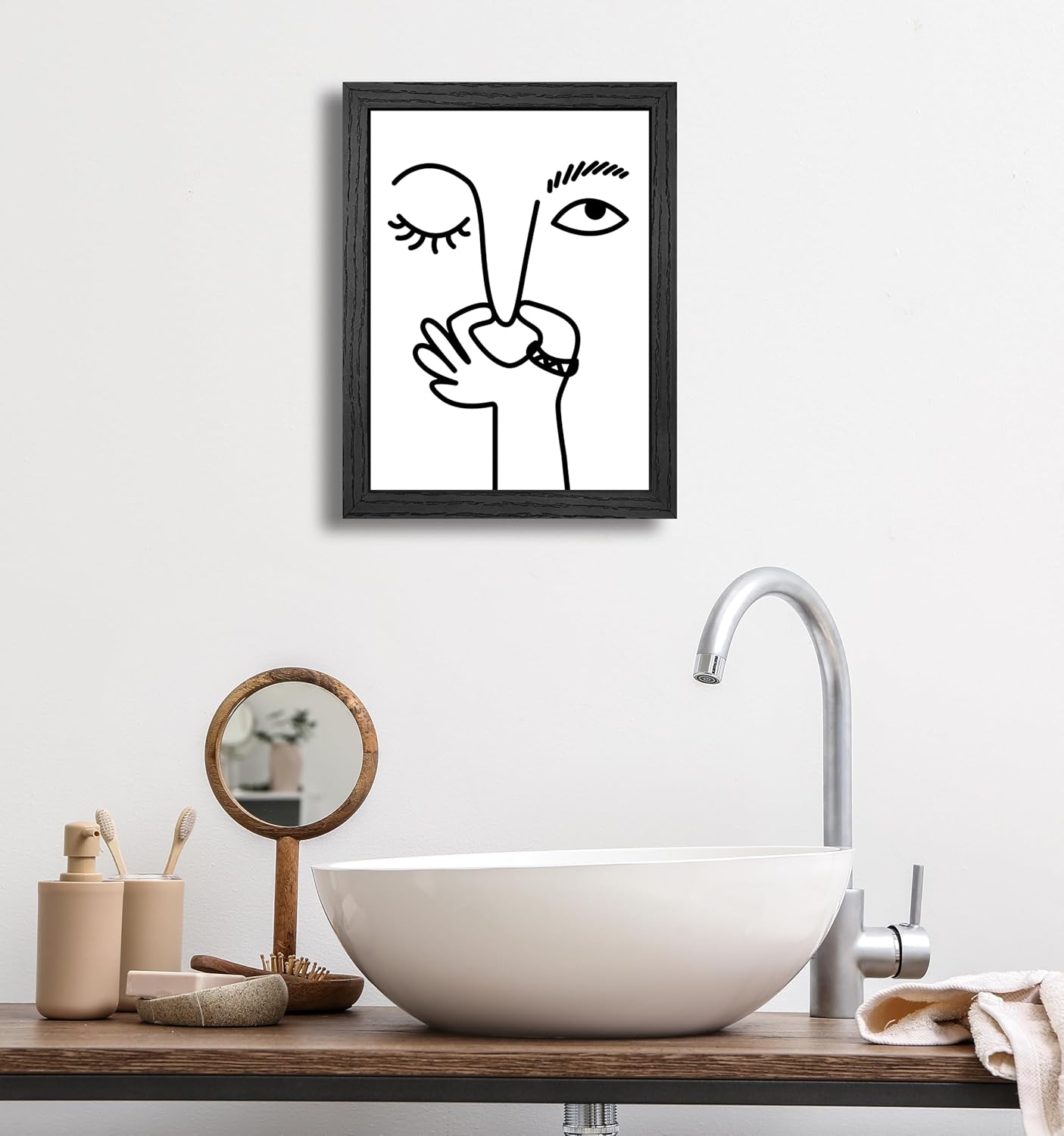 Size: 12×16 inchesTheme/Color: bathroom wall art/bathroom wall decor/black and white wall art/minimalist wall art/funny wall art/funny bathroom wall art/bathroom decor wall art/bathroom pictures Introduction: 1. This is a canvas printed work, not a hand-painted one.There is no difference in the product itself, but due to the differences in displays, the colors for each user may vary slightly. 2. Each canvas print is mounted in a solid wood frame with hooks and brackets for hanging on the wall or standing on a table.The surface is wrapped in protective film and placed in a sturdy master carton for transport to prevent damage to the product. 3. Canvas prints are printed in high resolution on high-quality thick artist canvas. 4. Enhance the atmosphere of the space and break the monotony.Interesting canvas paintings in the bathroom can bring a smile to people's faces, relieving boredom or stress while using the restroom, and also easing guests' awkwardness when using the bathroom.Styles such as black and white minimalism, cartoon illustrations, or abstract art can instantly transform the bathroom from a functional space into a unique little corner. 5. If you have any questions or need further assistance, please feel free to contact us. We look forward to providing you with the best shopping experience!