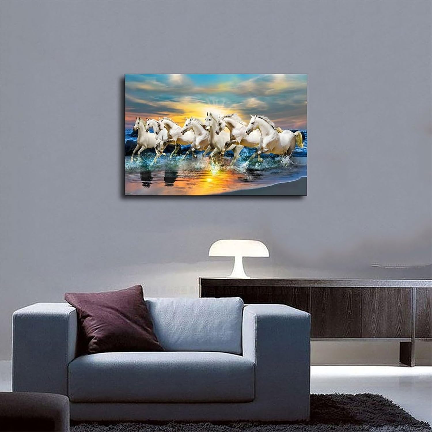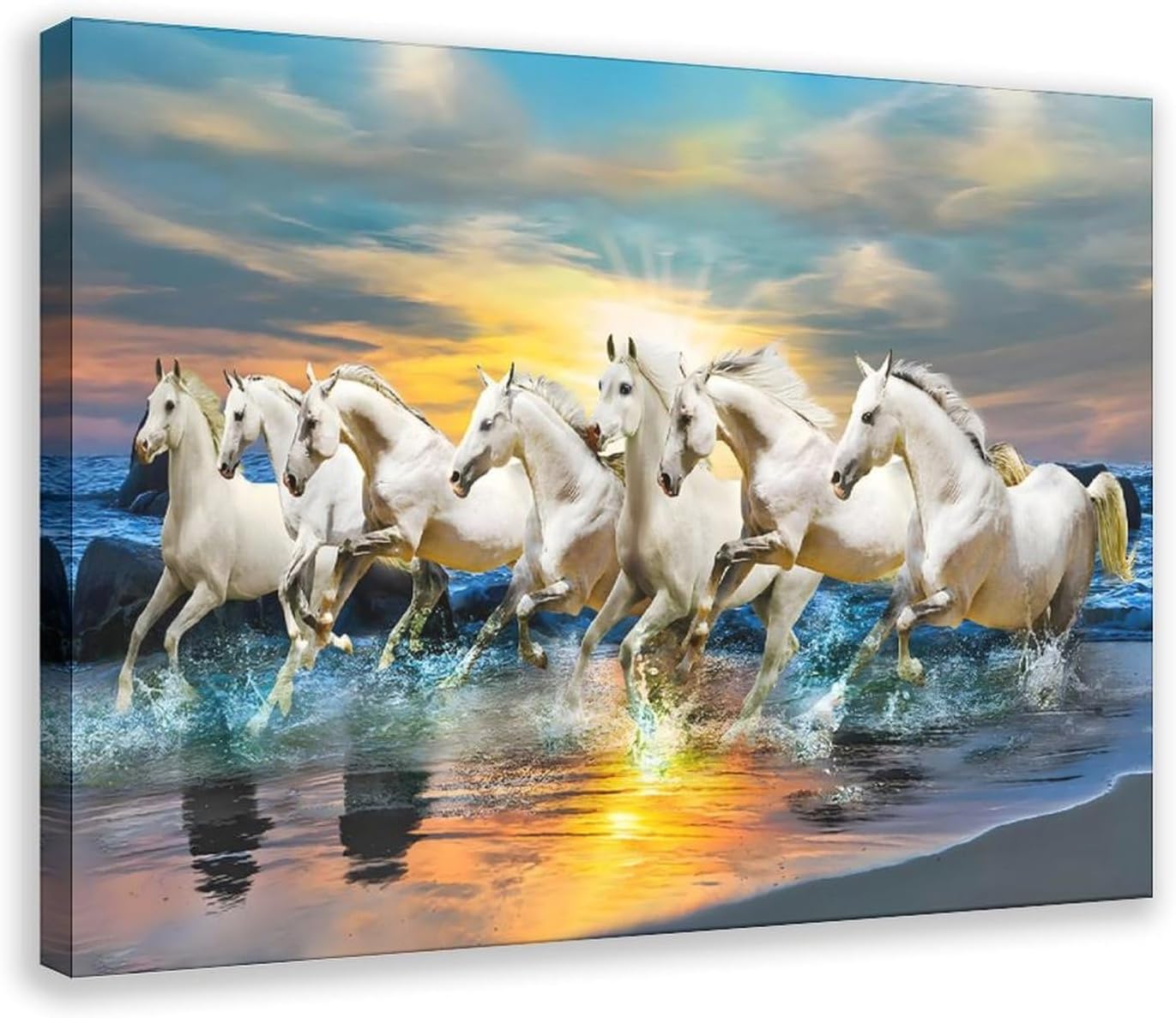 | Color | Seven Lucky Running Wild Horses Wall Art Animal Posters 7 Horses Running Painting 01 |