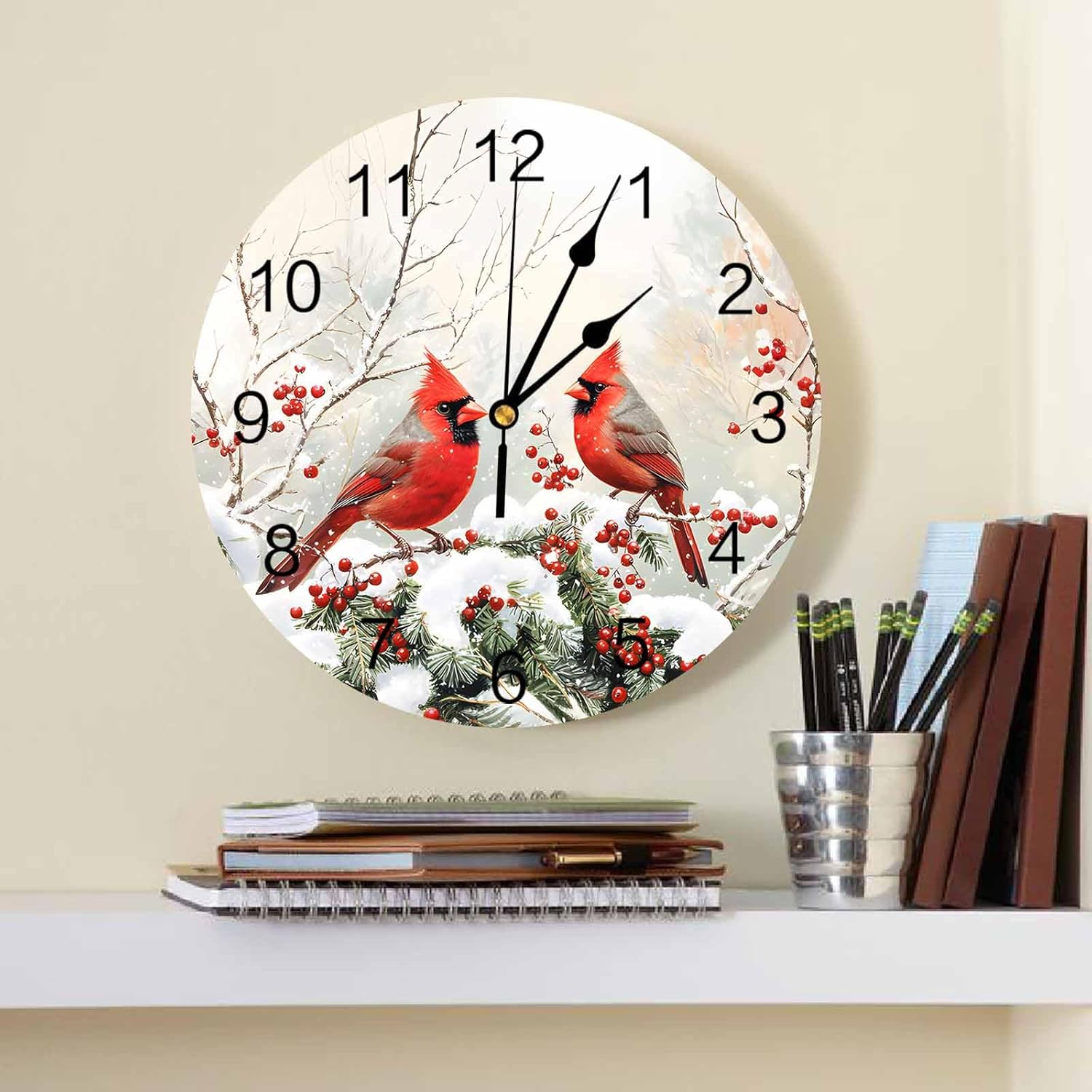 Christmas Decorative Frameless Silent Wall Clock[ Wall Clock]: The Christmas wooden wall clock is 10 inches, and large bold numbers on the panel are easy to view. It is very suitable for kitchens, living rooms, bedrooms, bathrooms, offices or bars, as well as for the elderly. Please note that this wall clock requires an AA battery (not included)[Silent Wall Clock]: High quality silent sweep quartz movement provides a quiet experience for your sleep and work. Enjoy your sleep[Material]: The wall clock is completely made of exquisite printed pattern clock face and black Arabic numbers (including hour and minute hands). It is full of texture. So it is good choice for christmas ,children's day ,bridal , anniversary , mothers day ,fathers day, birthday present, holiday etc.Share this beautiful wall clock with the ones you love[Battery Operated Wall Clock]: Requires a single AA battery (not included). For longer life, please use ordinary carbon batteries instead of high-capacity alkaline batteries![Easy to Hang]: The clock simply hangs from the keyhole slot on a nail, screw or hook and the slot attaches to the motor on the back of the clock