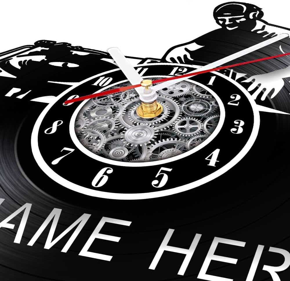 A trendy retro vinyl clock made of 12 inch (30 cm) recycled vinyl records, which be a perfect decoration for you room or shelves if you want. We can also custom make any personalized design for you, if you need a custom made design or for bulk orders queries please contact us. Feature: Material: Vinyl record Size: made of 12 inch (30 cm) Vinyl LP Wall Clock Quartz: Battery operated silent non ticking mechanism, requires 1* AA battery (not include) Wall Hanging: Wide back slot ensures easy installation. Package Include: Vinyl Record Wall Clock*1