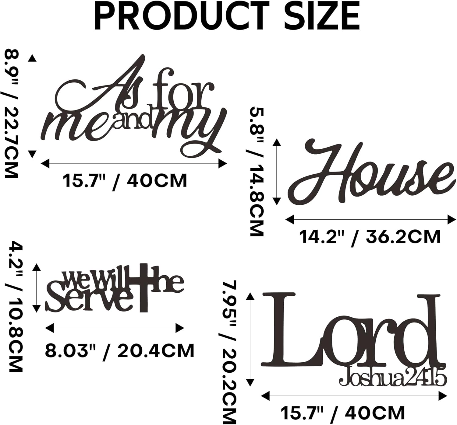 Declare your faith with As For Me And My House Wall Decor – a masterful fusion of scripture and craftsmanship. This large 76.4x48cm Christian metal art set displays Joshua 24:15 across four matte black panels, designed to create impactful bible emergency numbers displays or standalone inspirational wall art in gardens, prayer rooms, or entryways.Crafted from weather-resistant metal, this black Jesus wall art thrives indoors or outdoors—hang the full scripture as god bless decorations above a fireplace or scatter individual words as bible verses wall decor on office walls. Pre-drilled holes allow effortless arrangements, while the dignified typography harmonizes with rustic, modern, or ecclesiastical styles.Whether enhancing a worship space, gifting to a believer, or creating with god all things are possible wall decor, this set radiates spiritual strength. Its durable, waterproof build makes it ideal for porches, classrooms, or as large metal wall decor for churches.Specifications:Material: MetalSizes:Combined: 76.4x48cm (30x18.9IN)Individual Panels: As (40x22.7cm), House (37x14.8cm), Serve (20.4x10.8cm), Lord (40x24.6cm)Color: Matte BlackUse: Indoor/OutdoorNote: Minor size variations may occur due to manual measurement.Gently reshape if needed after delivery.