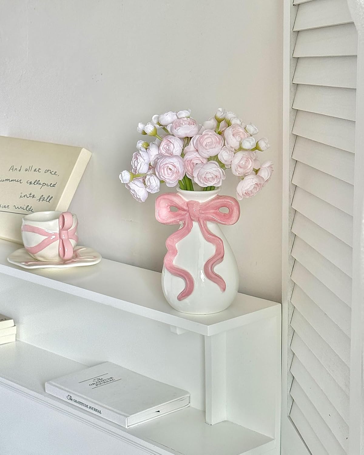 pink bow white vase