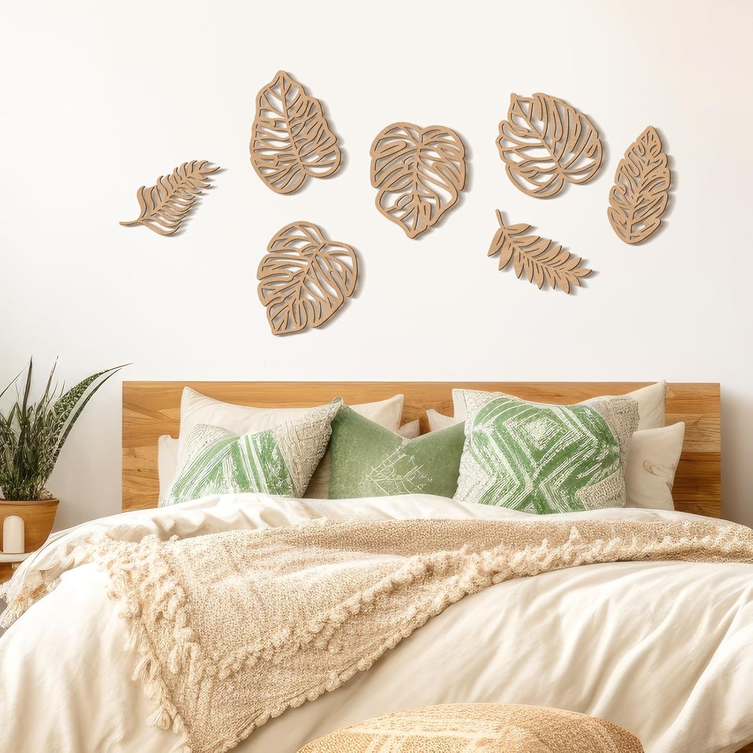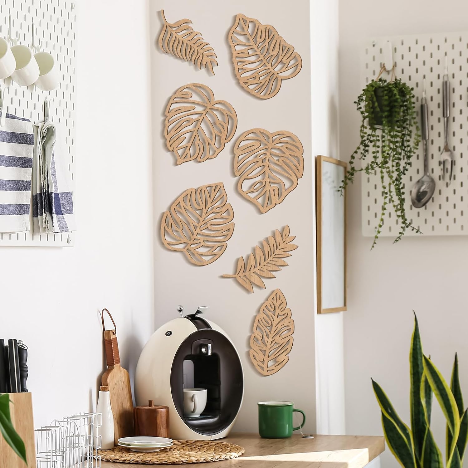Features: Vibrant Wood Color Aesthetic: The wood color of these palm leaf decorative pieces adds a lively, natural touch to your space. They easily create a fresh, tropical vibe, instantly making your home feel serene without overwhelming the space. Easy Installation: Each piece of leaves wall decor comes with hooks on both sides, ensuring a hassle-free installation process. This user-friendly design allows you to achieve professional-looking displays in your living room, bedroom, or office with minimal effort. Specifications: Material: wood Color: wood color Size: Length: between 4.72-8.27 inches/ 12-21 cm Width: between 9.65-10.24 inches/ 24.5-26 cm Thickness: 0.2 inch/ 0.5 cm Package includes: 7 x Palm leaves wall decor Notes: Manual measurement, please allow slight errors on size. The color may exist a slight difference due to different screen displays.