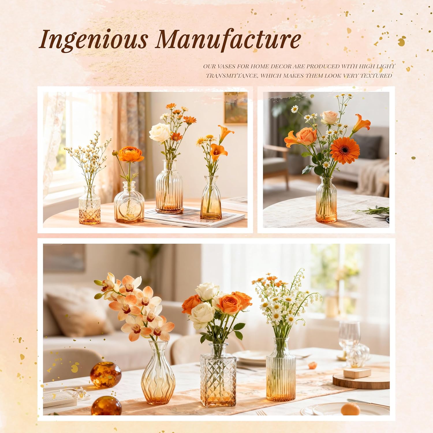 | Recommended Uses For Product | Bathroom Vanity Decor, Dining Table Centerpiece, Faux Flower Display, Gift for Loved Ones, Home Desk Decoration, Kitchen Counter Accent, Living Room Decoration, Reed Diffuser Holder, Seasonal Decoration, Shelf Decoration, Wedding Table Decor |