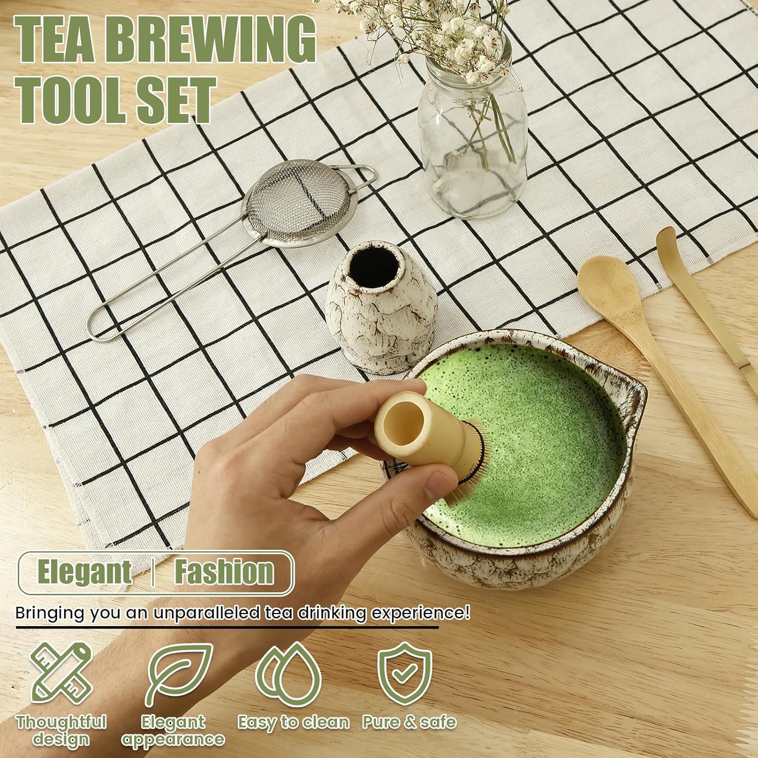 | Included Components | 1×Bowl 1×Whisk Holder, 1×Matcha Whisk, 1×Stainless Steel Sifter, 1×Tea Scoop, 1×Wood Spoon |