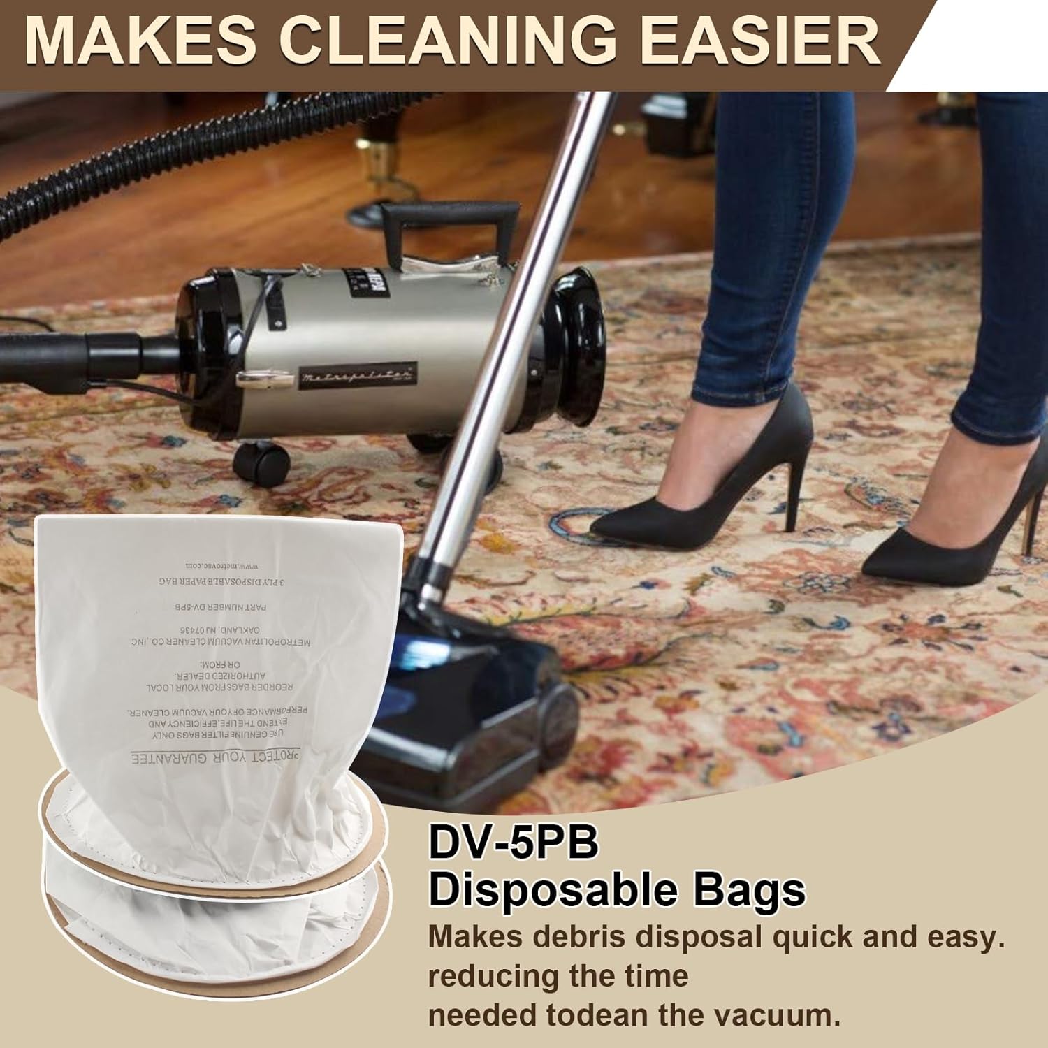 7 Pack DV-5PB Disposable Bags Fit for MetroVac Vacuum Models MDV-2 / MDV-3, VNB & OV Series Compatible Models: Fit for MetroVac Vacuum Models MDV-2 / MDV-3, VNB & OV Series. Included: 7 * DV-5PB Disposable Vac Bags NOTICE: This is not an OEM product. The brand names and models are just used to indicate compatibility. Brands are registered trademarks of the respective owners.