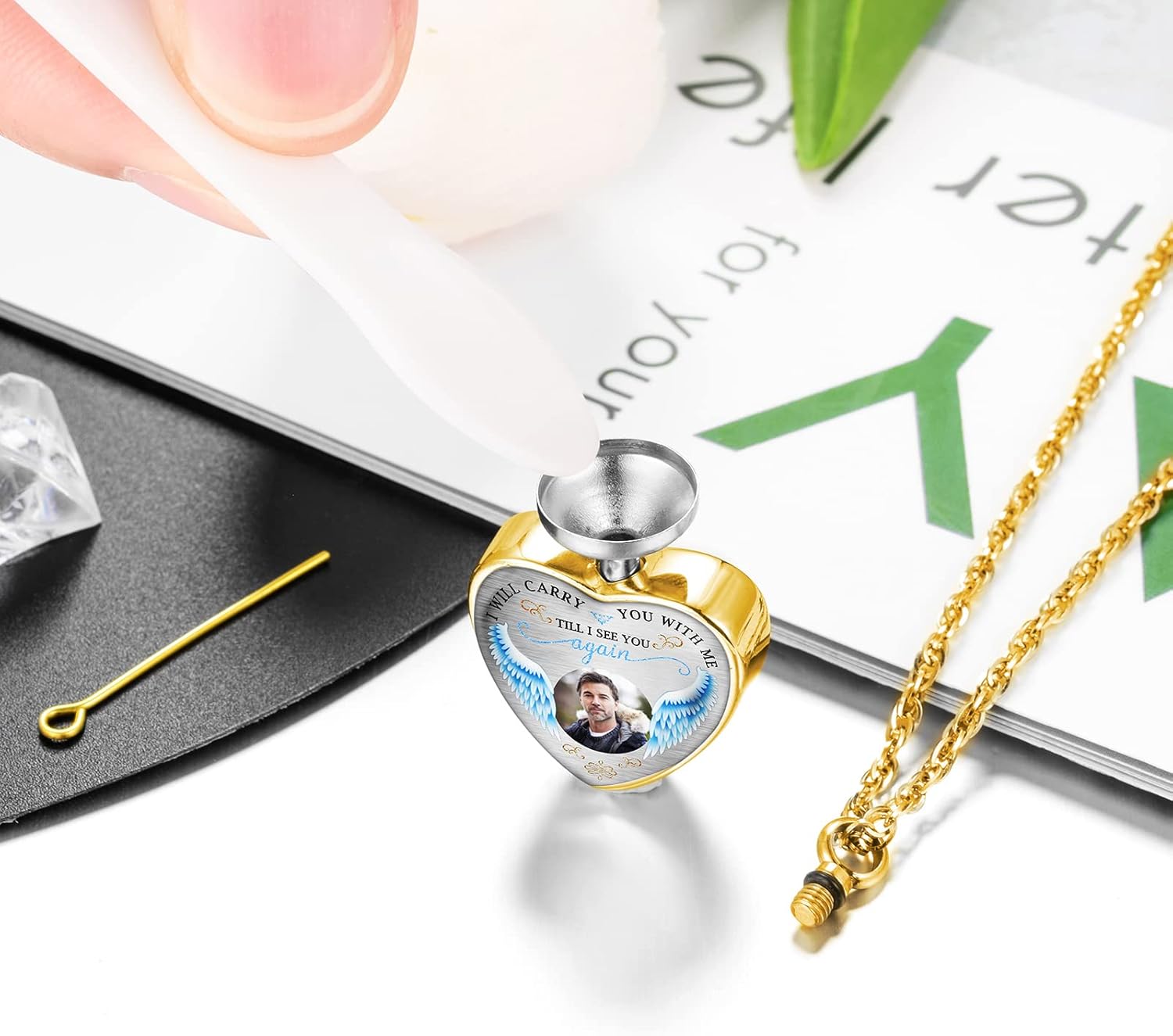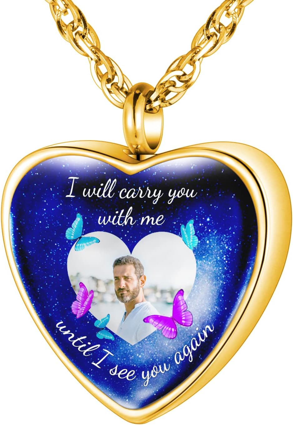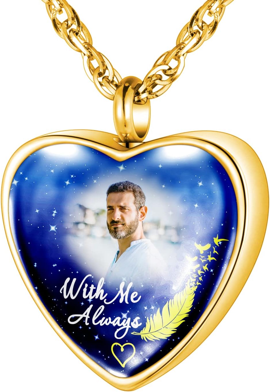 ✥✤✯XIUDA Cremation Jewelry - Custom Photo & Text✥✤✯ You came to my life, and left beautiful memories on my heart, I will carry you with me ALWAYS. Honor your beloved ones by keeping their Ashes, Hair/Fur into a hand-crafted urn necklace. Keep your loved ones memories close with this memorial ashes necklace which are meant to be shared among families and friends when desired. If you want to offer a unique present to your families and friends this is it! Add photo on the front and text on the back to make it even more special and personalized. High-quality Material: Made of premium stainless steel, we randomly tested different people in different times, and the results showed no allergies, no rust, no fade and no corrode. Just like the memories will last forever. Heart Size: 1.05*0.88inches, a loving memorial keepsake necklace, hold only a small amount of ashes. Safe Screw-lid: Equipped a threaded screw to cover the cremated ashes to ensure that the ashes are completely sealed from water or leakage. Keep your loved one's memories forever. Personalized Urn Necklace: Click the button "Customize Now" to get a unique and meaningful gift for your families/friends.