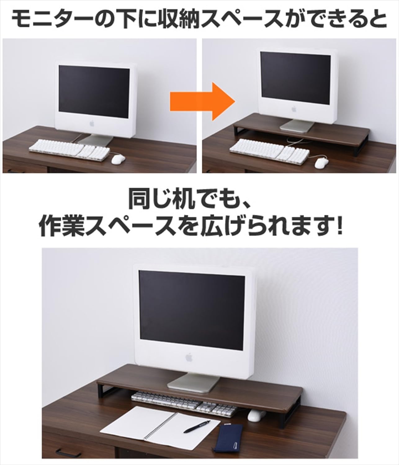 ● Monitor stand that can store your keyboard or mouse and make effective use of your desk Convenient as a fax or printer stand. The surface does not have any obstructions such as boards, so you can keep cables neat and clean. Assembly (assembly time: about 10 - 20 minutes)