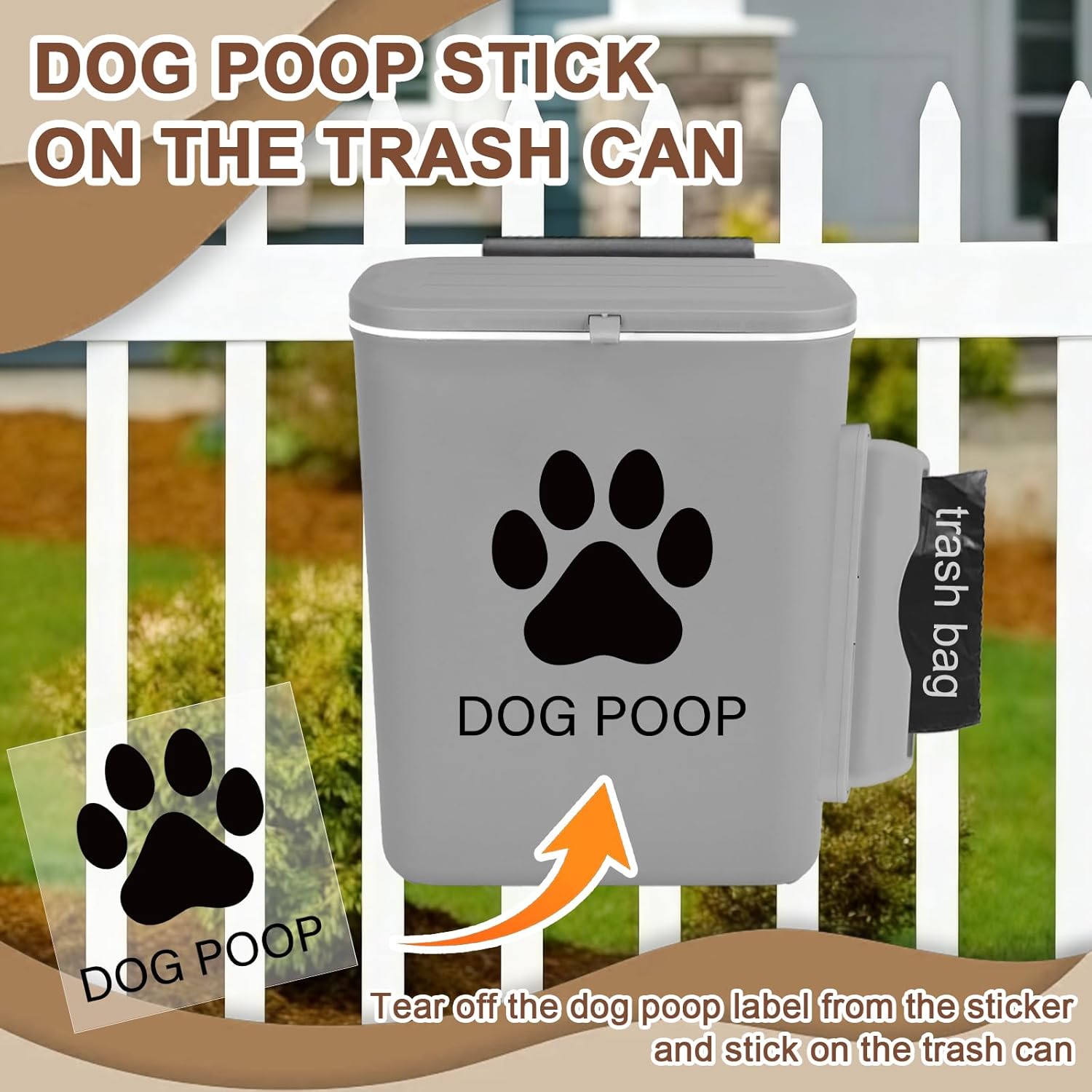 Dog Poop Trash Can with Lid - 2 Gallon Outdoor Dog Waste Bin, Hanging Design for Fence & Wall, Includes Trash Bag DispenserFeatures:You can mount this dog waste trash can on the wall, hang it on the fence and outdoor garbage can, or hide it in the garden.The secure mounted design effectively prevents dogs from bumping into or knocking over the trash can, avoiding messes and ensuring stable, space-saving outdoor waste disposal.This dog trash can outdoor offers a practical and cleaning way to manage pet waste outdoors. Designed for medium and small dog, the dog poop trash can outside combines ease of use, ensuring a clean environment for you and your furry friends. Choose this dog poop bin for your dog, more convenient outdoor experience.Specification:Color:GreyMaterial:PlasticSize:26*23*13cm/10.24" x 9.05" x 5.12"Product content:Dog Poop Trash Can Outside Hanging * 1Garbage bag * 75Trash Bag Dispenser * 1Metal Bracket * 1Plastic Bracket * 1