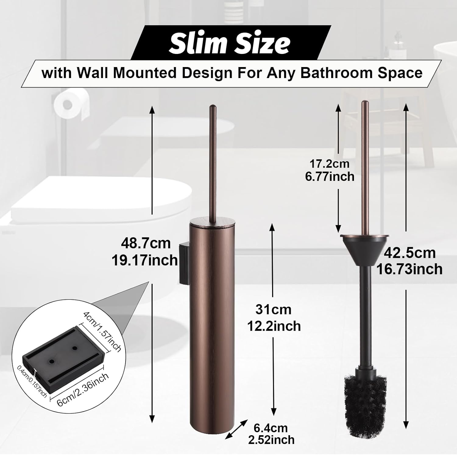 Color: Rose Gold | Design Style: Wall Mount Toilet Brush HolderSPECIFICATIONS - Finish: Rose Gold - Material: Aluminium + ABS - Installation Method: Wall Mount Toilet Brush HolderPACKAGE INCLUDES - 1 x Toilet Brush Holder - 1 x Install Base - 2 x ABS Brush - 1 x Splash Protector - 1 x 3M StickerMAINTENANCE TIPS 1. Please assemble the brush according to our instruction on the pictures 2. Use cotton cloth to clean the towel ring with water and wipe slightly, avoid using corrosive or acid cleaner such as bleach, vinegar. 3. Regular maintenance, keeps metallic gloss and makes towel ring like new, decorates home life beautifully.AFTER SALE Please don't hesitate to contact us if got any question. Usually, we will reply you in 24 hours. Upgrade your bathroom with our stylish and functional bathroom accessories. Our collection includes not only complete wall-mounted accessory sets, but also individual essentials such as toilet paper holders, toilet brush holders, towel rings, soap dispensers, and more. Designed to mix and match easily, our products help you create a clean, organized, and modern bathroom that fits your everyday needs.