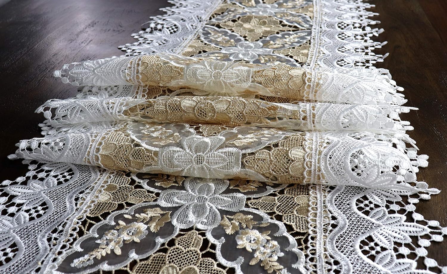 Size and Shape Available:12 x 18 Inch Placemat16 x 36 Inch Rectangle16 x 45 Inch Rectangle16 x 54 Inch Rectangle16 x 72 Inch Rectangle16 x 90 Inch Rectangle54 x 72 Inch Rectangle64 x 90 Inch Rectangle64 x 90 Inch Oval72 x 108 Inch Rectangle72 x 126 Inch Rectangle36 Inch Round60 Inch Round72 Inch Round36 Inch SquareDesign: Premium Elegant Embroidered Lace Design Which Add the Sophisticated Look to Your Table with Our Luxury Design.Versatile:It is a Great Gift Choice for Family, Parents, Lover, Friend or Any Valuable Person in Your Life. It is also Perfect for Self Use for Coffee tables, Brunch, Dinner table, Banquet, Side Table, Birthday Party