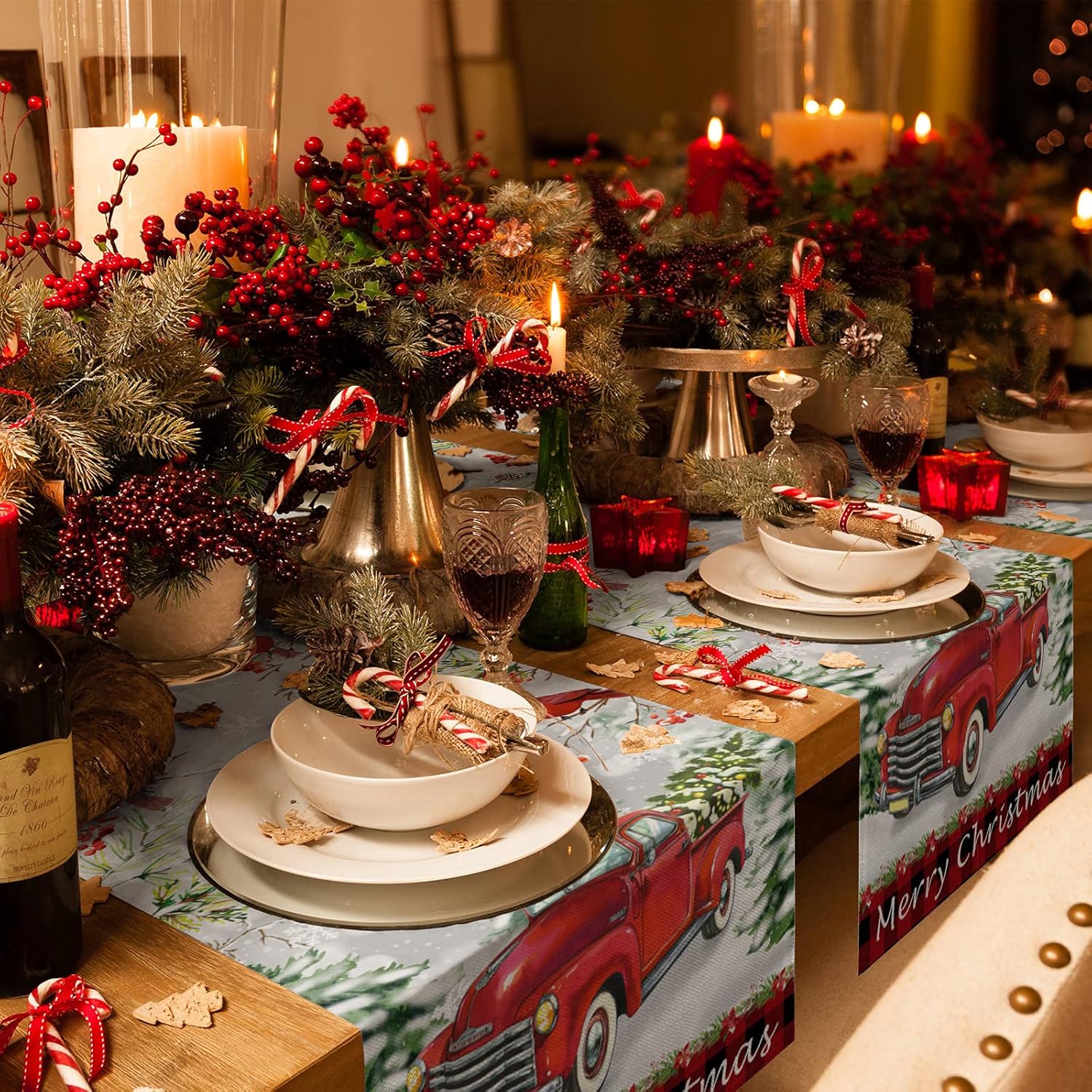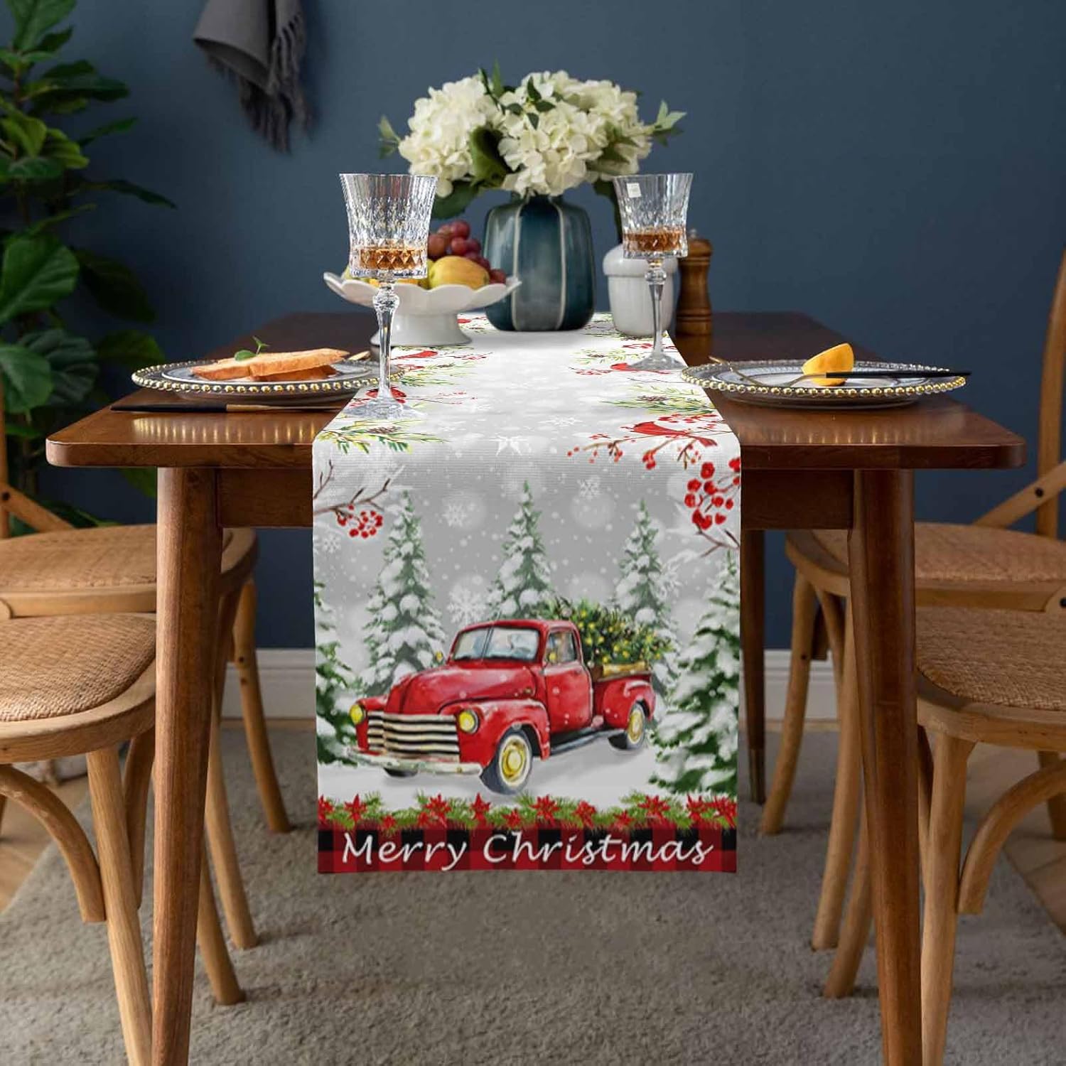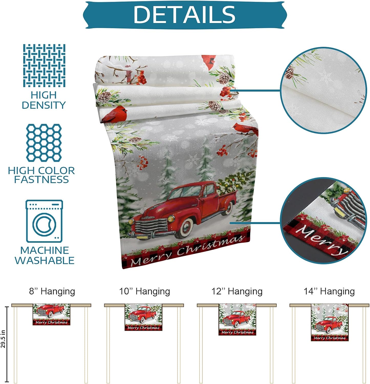 Size Tips♥13x70inch (33x178cm)♥13x90inch (33x229cm)♥14x72inch (36x183cm)♥16x72inch (41x183cm)♥18x72inch (46x183cm)♥13x108 inch(33x274cm)♥13x120 inch(33x304cm)♥13x36inch (33x91cm)♥13x72inch (33x183cm)♥If you are looking for a Christmas table runner that is both stylish and sophisticated while still being practical enough for Christmas Party use, look no further than our Christmas polyester table runner you want.♥Made of high quality 100% polyester which is wrinkle-free and durable, the best choice for your Christmas dining table.♥As polyester is breathable so that it is a cool and airy material has a strong ability to disperse water and quickly dry the flag, allowing them to use multiple festivals.♥This soft table runner can be a great gift for Christmas♥Perfect for Christmas Table Decoration, Christmas Season Family Dinner Party.