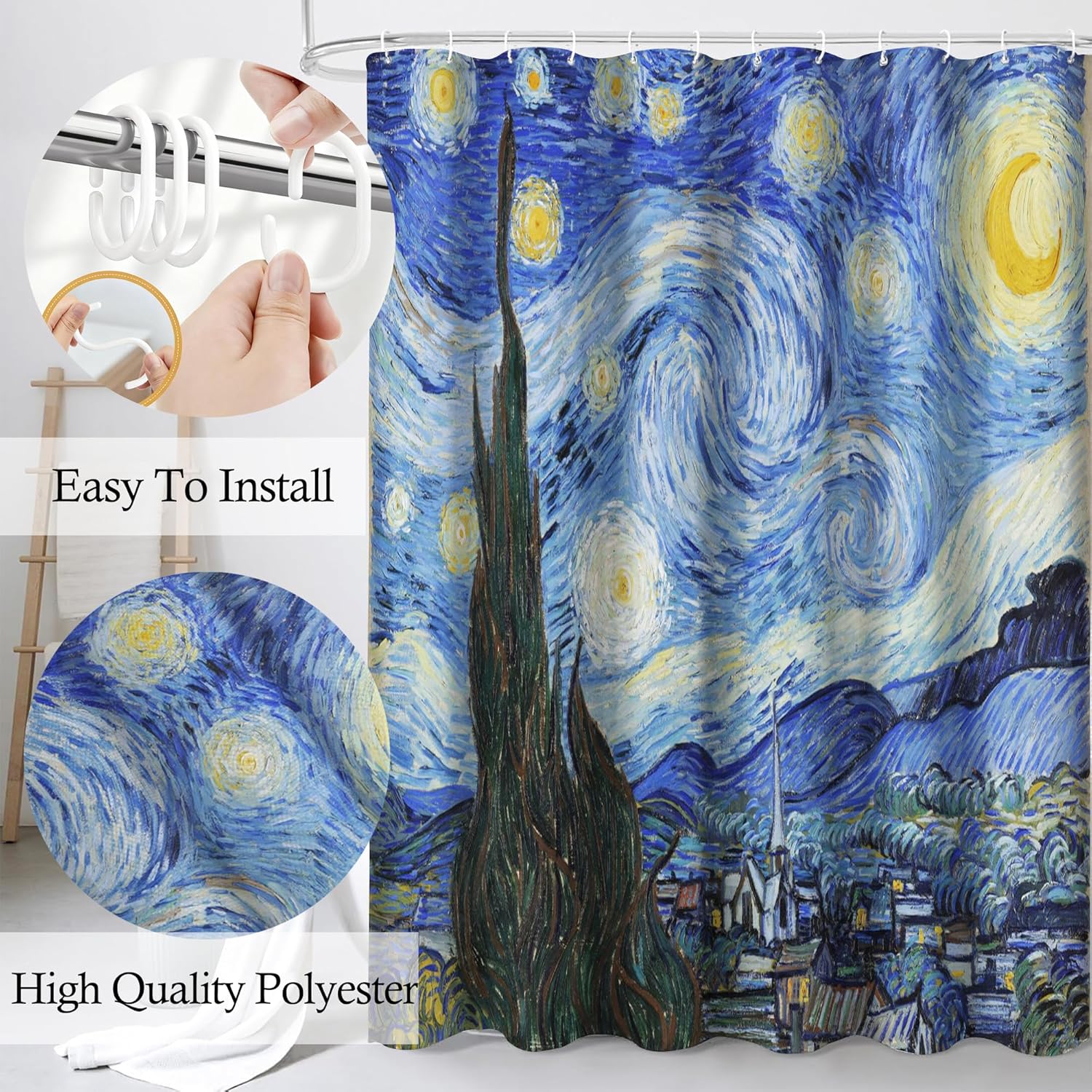 Unique Design Modern printed shower curtain is designed with vintage, boho, ocean, farmhouse, geometric, abstract and other fashionable art elements Clear Patterns & Vibrant Colors Curtain uses high-definition inkjet printing technology to show the shape of animals, flowers, etc. with light and shadow levels of precision and texture, and restore nature's serenity as one. The overall design with Morandi gradient color scheme creates a world full of art. Engineered for Perfection High density polyester base is overlaid with a nano-scale waterproof coating to achieve double waterproof performance and effectively resist water vapor penetration. The top is made of 304 stainless steel with rust-resistant rings and reinforced edges to ensure long-lasting stability. Customizable Elegance 84x72 inches in length, comes standard with 12 pcs silent C-shaped shower curtain hooks, and can be installed in 3 minutes without drilling holes. Effortless Care Wipe with a damp cloth for daily maintenance, machine washable (warm water) for deep cleaning, no bleach. Curtains support foldable storage design and have been tested for color fastness, and can still maintain vibrant colors and wrinkle-resistant performance after multiple machine washings. Multi Scene Suitable for high-end hotels, motor home, family bathrooms and SPA spaces, through natural themed elements to enhance the style of the room, providing a new and upgraded solution for guest bathrooms, combining practical functionality and decorative aesthetics.