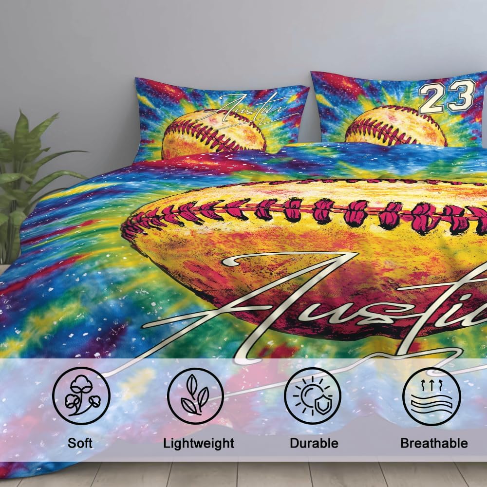 Personalized Softball Bedding set, Comforter Set with Name Number: Our three-piece bedding set is designed to transform your sleeping experience into a haven of luxurious comfort. Whether you're snuggling up on a chilly winter night or seeking a soft layer of protection during the milder seasons, it has you covered and is perfect for those who seek comfort and style.