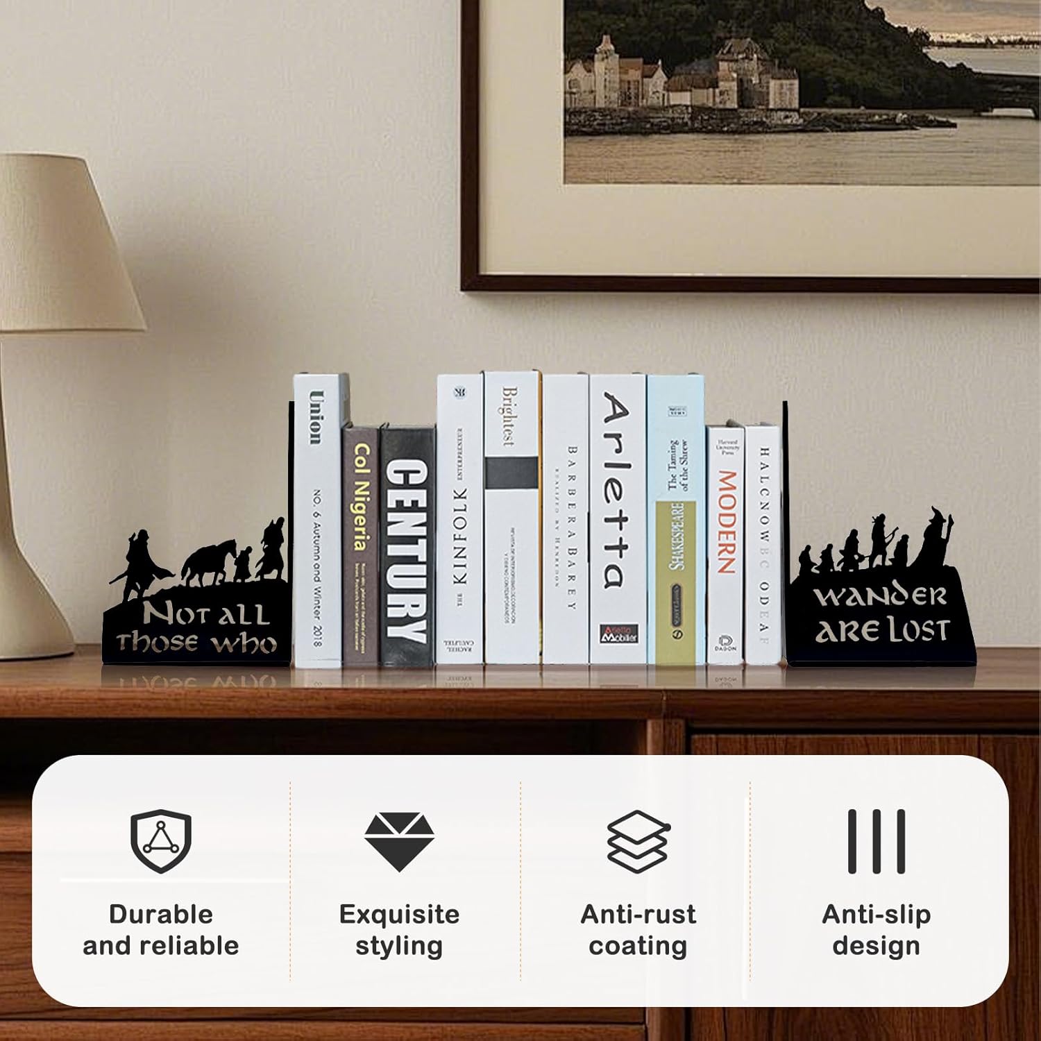 LOTR Middle Earth Heavy Iron Decorative Bookends - Large Black Unique Book Holders for Office, Home Shelves & Epic Adventure Collectibles