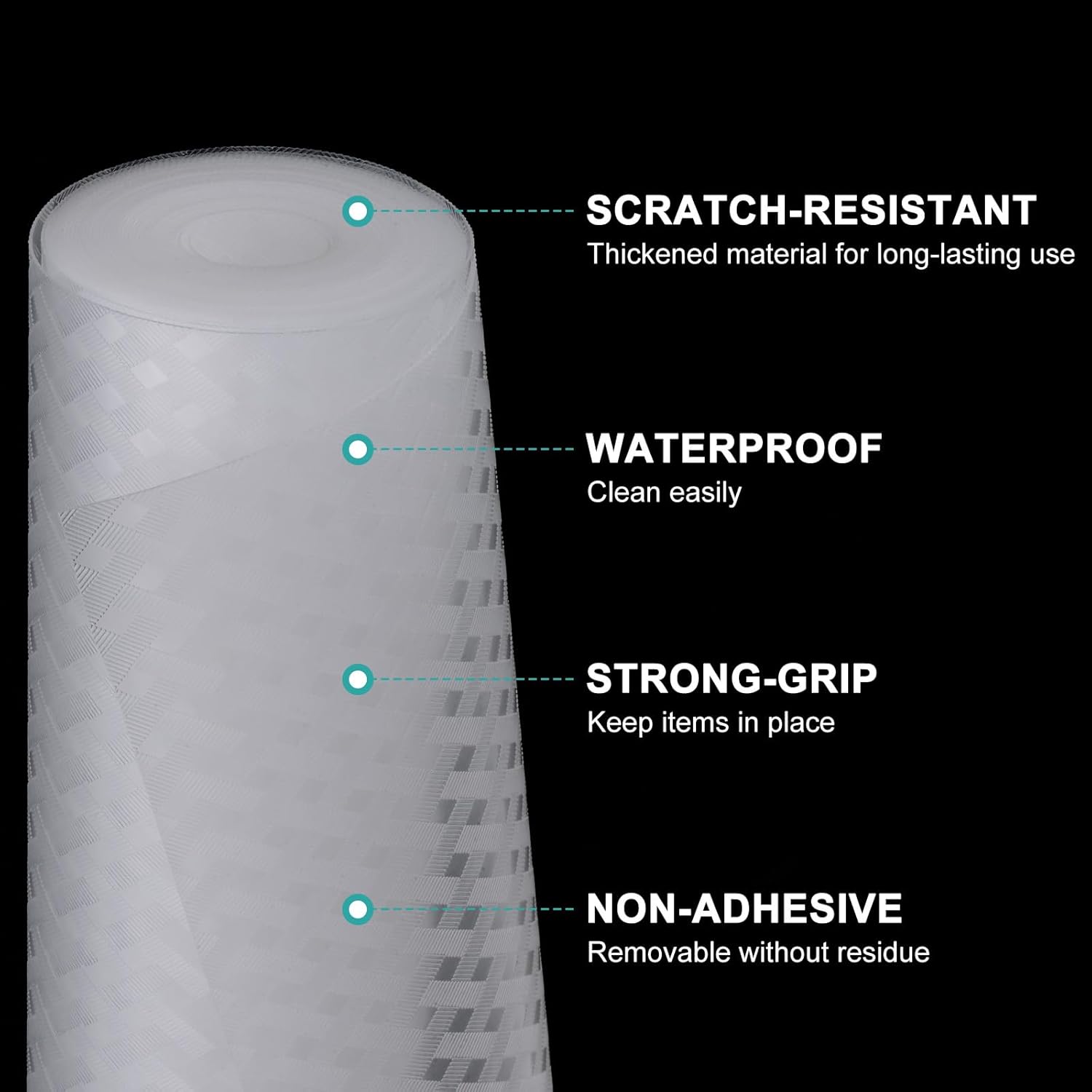 • Multifunctional - The shelf drawer liner is engineered with a non-adhesive design, it won’t be sticky to the furniture and it is strong-grip, helps keep your items in place, and prevents fragile items from slipping. Meanwhile, the shelf liners can not only be used as a kitchen liner to ensure the clean of the home.