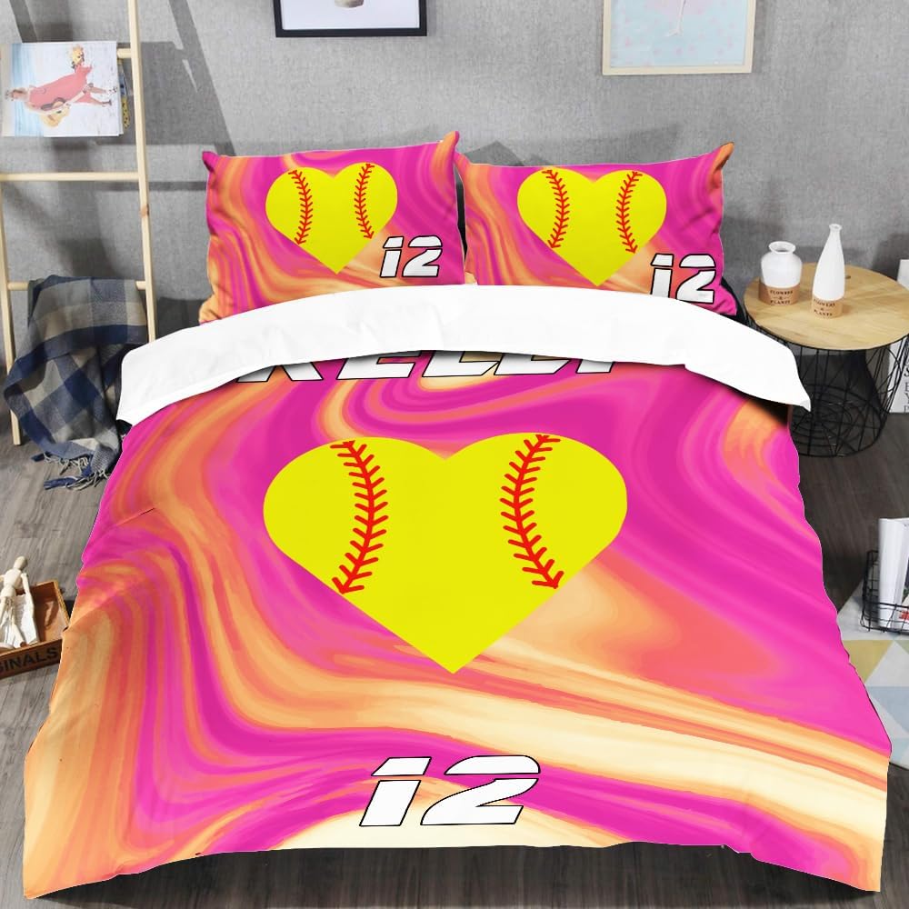 Personalized Softball Bedding set, Comforter Set with Name Number: Our three-piece bedding set is designed to transform your sleeping experience into a haven of luxurious comfort. Whether you're snuggling up on a chilly winter night or seeking a soft layer of protection during the milder seasons, it has you covered and is perfect for those who seek comfort and style.