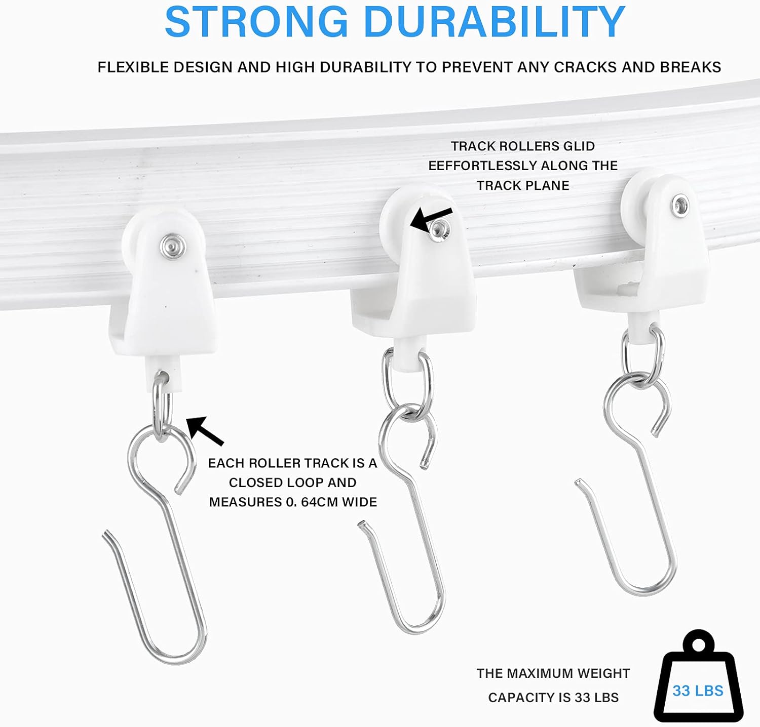 | Included Components | Ceiling Mounting Brackets, End Caps, Hooks, Rollers, Screws and Anchors |