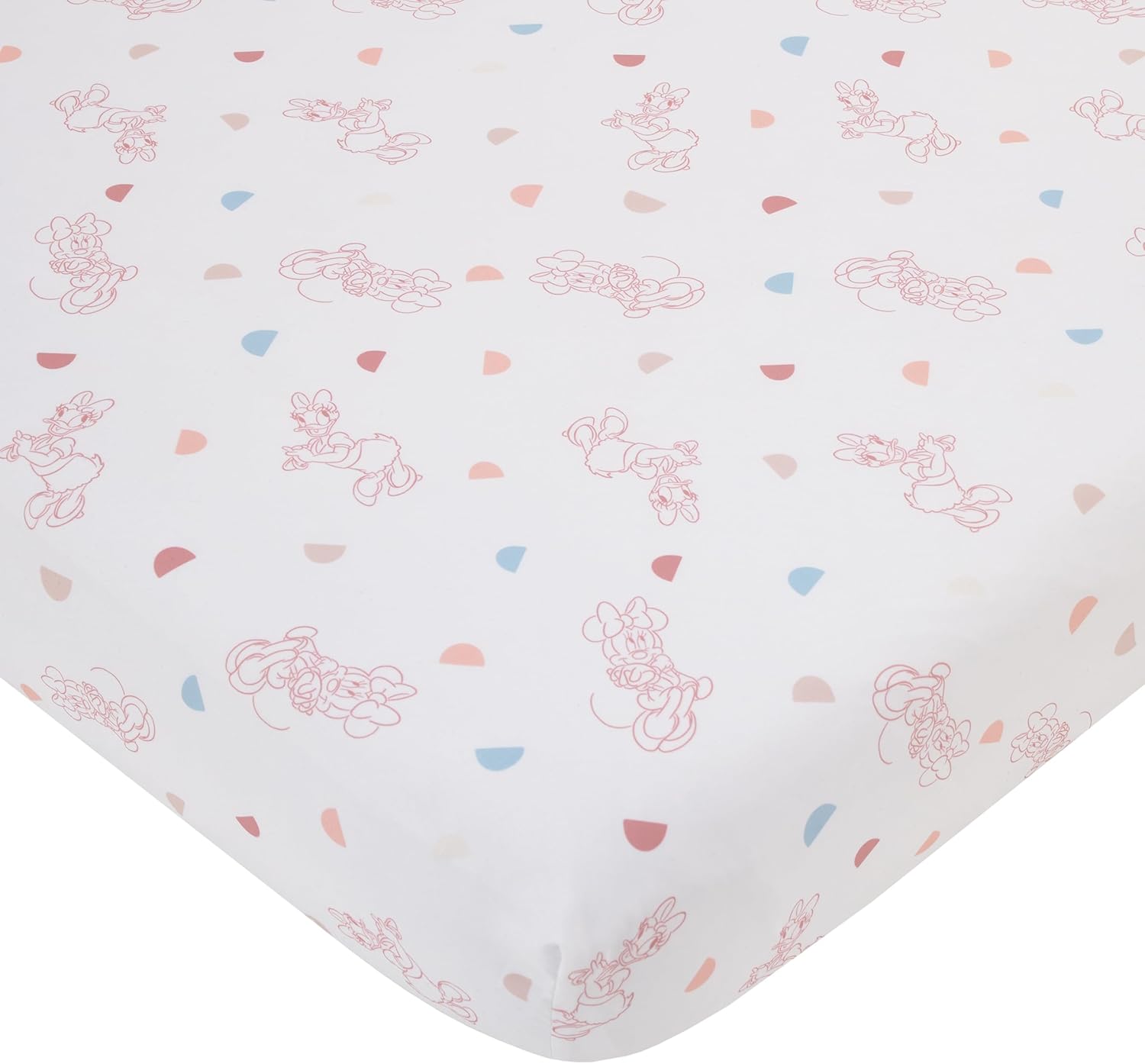 The Disney Mickey Mouse Fitted Crib Sheet features a fun and playful allover pattern of classic Mickey Mouse! Beautifully designed in shades of black and white with gray accents, Mickey is in various poses with a background of mickey ear icons. Your little one will sleep soundly on this crib sheet's cozy surface. Measures 28" x 52" x 8" and includes full elastic edges for a safe and snug fit and fits a standard size crib/toddler mattress. Coordinates nicely with most decor and perfect for your Mickey Mouse nursery!