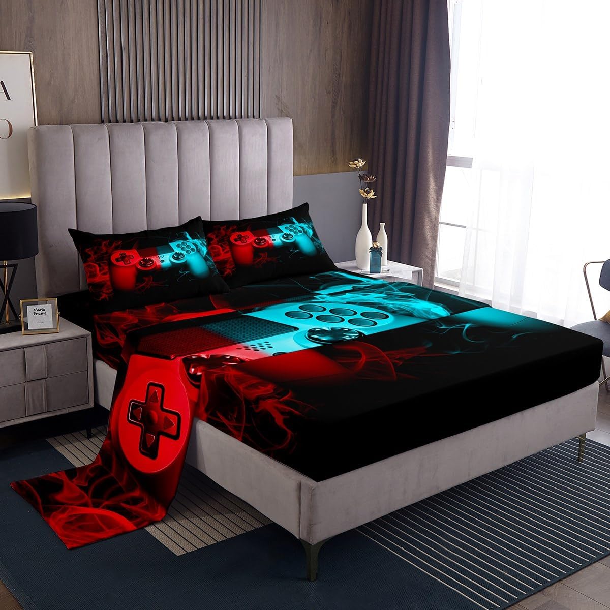 our bedroom decor bed sheets set look with the vivid stylish and elegant print specifications: Twin Sheet Set: 1 twin fitted Sheet 39 inch x75 inch x16 inch, 1 twin flat sheet 66 inch x96 inch and 1 pillowcase 20 inch x30 inch Full sheet set: 1 full fitted sheet 54 inch x 75 inch x 16 inch, 1 full flat sheet 81 inch x 96 inch and 2 pillowcase 20 inch x 30 inch Queen sheet set: 1 queen fitted sheet 60 inch x 80 inch x 16 inch, 1 queen flat sheet 90 inch x 102 inch and 2 pillowcase 20 inch x 30 inch deep pocket fitted sheet with elastic all around materials: microfiber fabric, lightweight and soft design: With vibrant and novelty designs and 3d print technique, this duvet cover is very suitable as room decor for boys and girls care instructions dry clean preferred; machine washable, use cold water on gentle cycle, tumble dry low