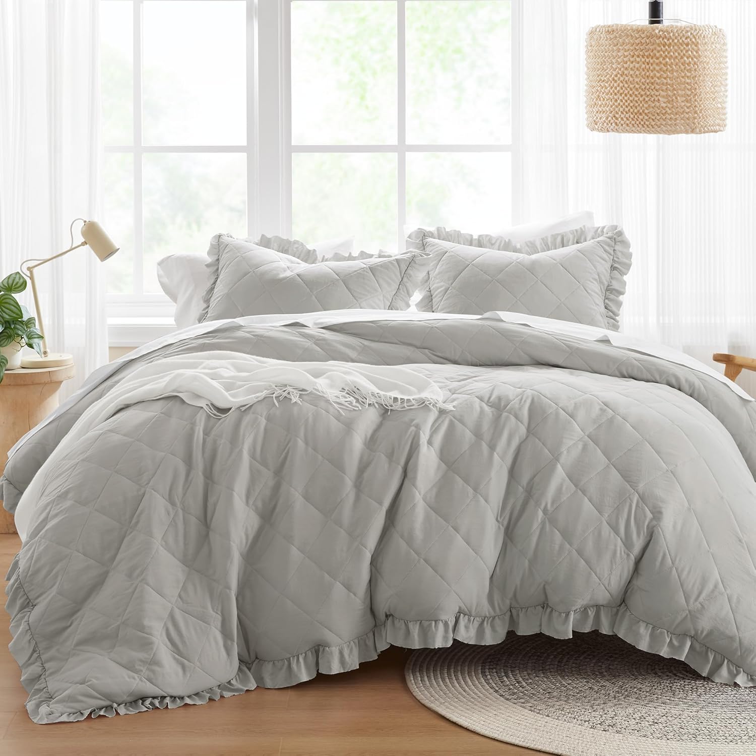 Embrace the charming allure of our ruffle duvet cover set, where each stitch tells a story of timeless elegance. Delicately quilted with grace, this set is meticulously crafted from pre-washed microfiber, it offers luxurious cotton-like softness for tranquil nights, resistant to wrinkles and colorfast. Versatile for all seasons, it's lightweight yet cozy, certified by Oeko-Tex for quality and wellness. Durable and easy-care, experience love and comfort like never before