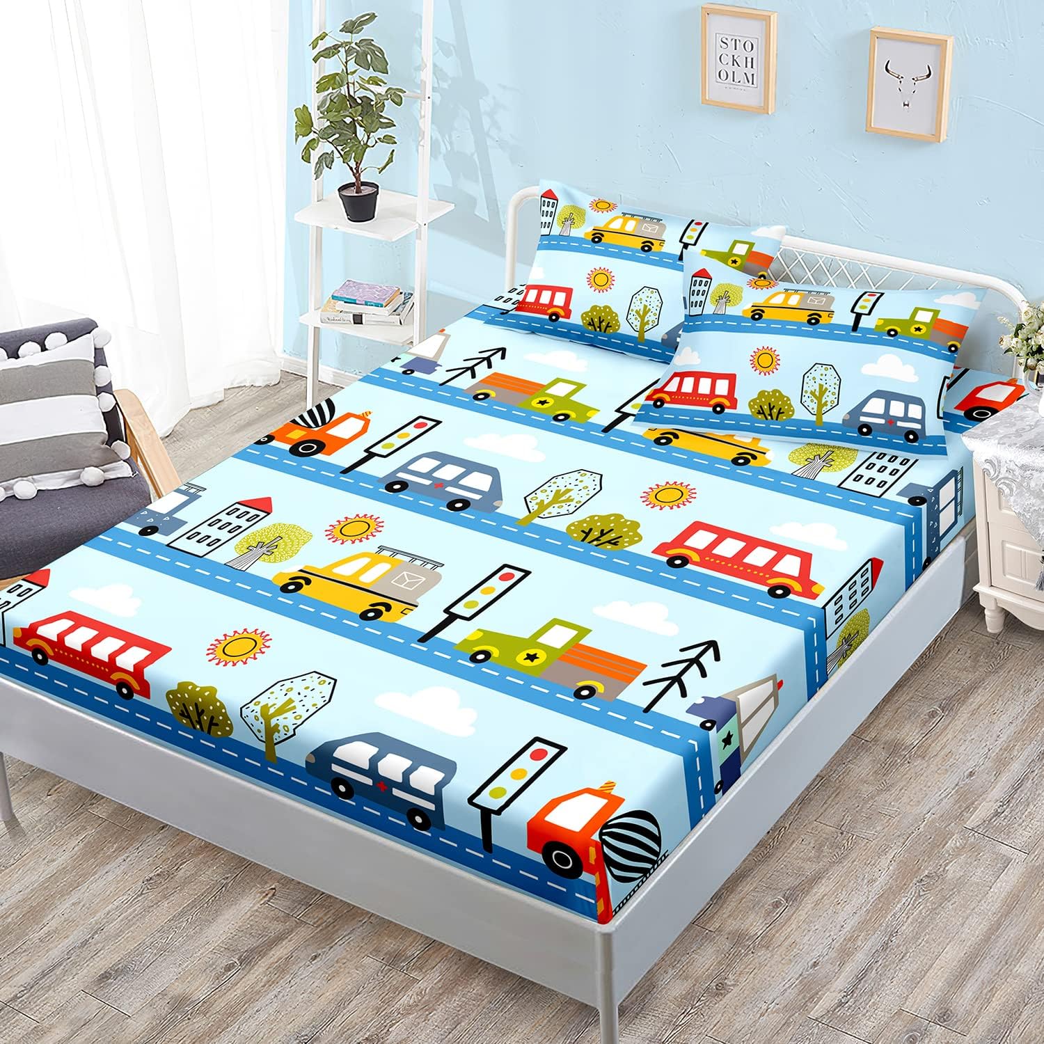Package Includes:1x Fitted sheet2x PillowcasesEasy CareMachine wash in cold water, gentle cycle, tumble dry low, do not bleach.Size InformationTwin sizeFitted sheet: 39"W x 75"Lx15"H inchesPillowcase: 20 x 30 inchesFull sizeFitted sheet: 55"W x 75"Lx15"H inchesPillowcase: 20 x 30 inchesQueen sizeFitted sheet: 61"W x 81"Lx15"H inchesPillowcase: 20 x 34 inches