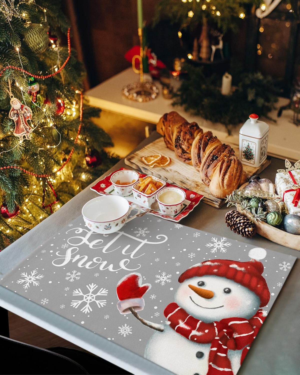 Christmas Placemats Set for Xmas Holiday Dining Table Decor🎄SpecificationMaterial: Mixed Polyester Cotton Linen-high quality durable materialSize:Table placemats set of 4 & Table placemats set of 6 13x19 Inch🎄Excellent QualityMade of high quality polyester, soft, wrinkle-proof and heat resistant。Perfect to protect the tabletop from food stains, and scratches.🎄Exquisite workmanshipExquisite Pattern & detail, full of christmas atmosphere.🎄Bright Table DecorGreet your guests with delicious foods and warm tabletop decor.Add flair to your dining table with our unique design placemats.🎄Various OccasionThese christmas placemats are perfect for home kitchen dining room table centerpieces and autumn decorations. And also suit for the living room, bedroom, shabby chic, farmhouse, rustic, barn, woodland, vint table. Good for everyday use, garden, parties, christmas eve, holidays etc.🎄Add a Xmas atmosphere to your home!Christmas placemats combine chic colors with unique xmas tree, gnome, snowman and truck, decorated with classic buffalo plaid, making this setting elegant and high-quality. Easy to match your christmas table decoration, add a holiday atmosphere to your home.🎄Warm Notice1. Do not bleach, machine washed; Tumble or line dry; light iron.2. Due to monitor differences, the actual color may vary slightly from what appears on your monitor's display.