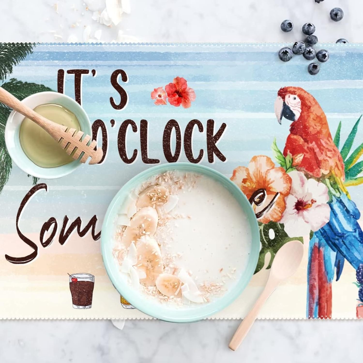Size: 12x18 inch, including 1 PCS/4PCS/6PCS placemats Material: high quality polyesterFeature: slip resistance, non-stick, no fading,easy to clean, washable and heat- resistant.Have a good function of practicability and decorations.Perfectly protects table top surfaces, reducing plate scratches and flatware noise, protecting your table with these durable place mat.Notes: not to machine wash. If there is a crease on it, just pour some hot water on the crease and smooth it with an iron