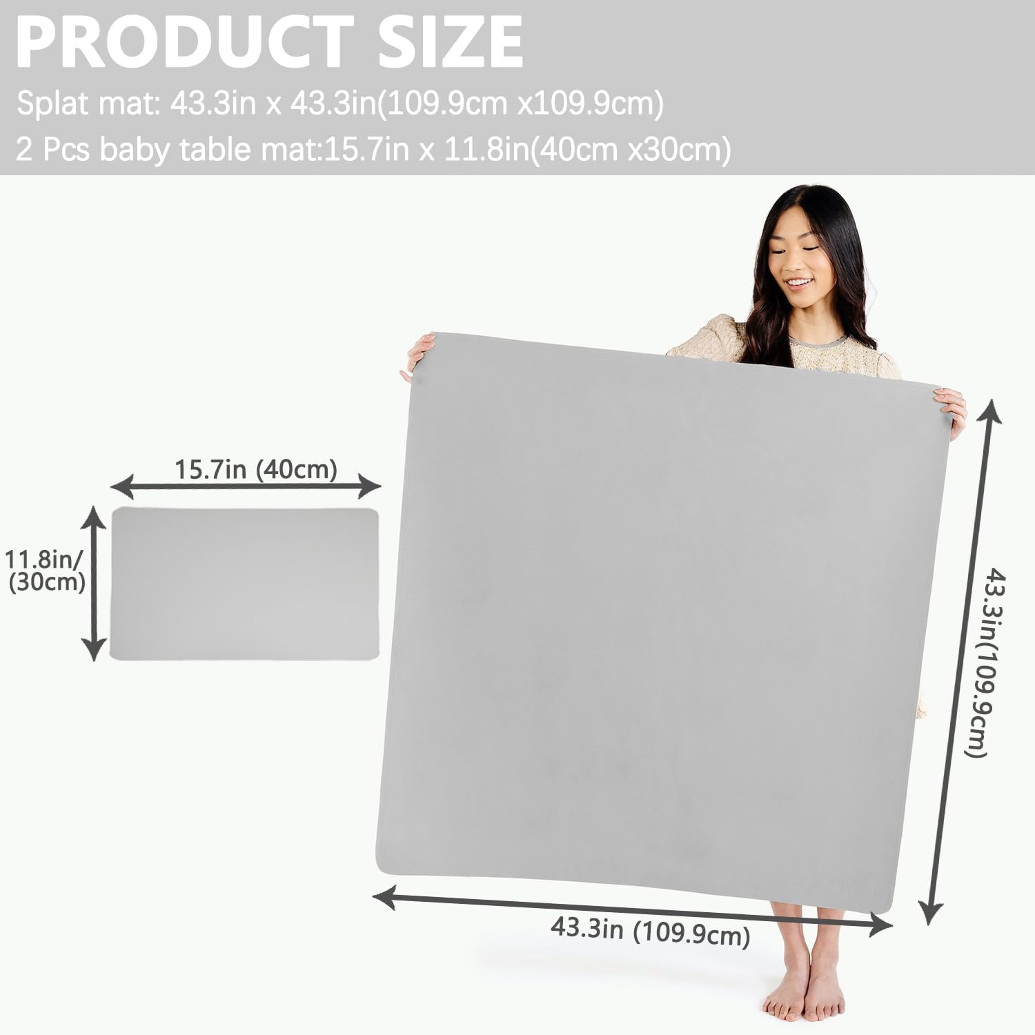 Baby Splat Mat for Under High Chair 43x43 Inch + 2Pcs Baby Table Mat, Vegan Leather Waterproof Washable Floor Protector, Oil-Stain Resistant Wipe Clean Anti-Slip Toddler Feeding/Crawling Mat (Gray)