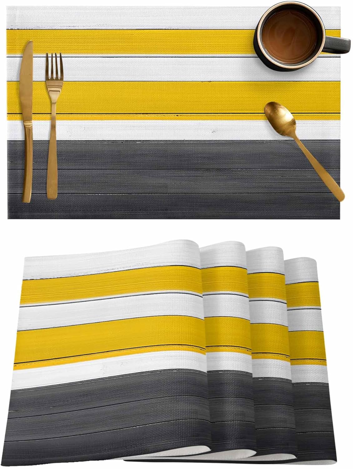 Cotton and Linen Placemats for Dining Table, Party, Holiday DecorBasic InformationMaterial: cotton and linen blended fabric.Size: Each placemat measures 13 x 19 InchesPackage:4 pack or 6 packWhy Choose Our Holiday Table Decoration1. The use of the placemat reflects the high-quality cultural taste of the host. A pleasant placemat can make you feel happy during the meal, help to enhance your dining experience, and leave a deep impression on the guests.2. Fine material mat that can well protect your table surface from scratches and prevent food stains and spots polluting the desktop.3. Perfect for multi-use, great accessory for household or other places. Non-slip, can be used to fruit plate mats for fruit plates in the living room; beautiful placemats for picnics when hanging out, and vase/pots mats for TV countertops, bedside table night water cup placement mat and so on.4. The stylish placemats are ideal gifts that can be given to your friends and new neighbors at daily use, woodland party, banquet, wedding, baby shower, birthday party, housewarming, etc.5. Easy to clean, just wipe clean with a sponge or cloth. Natural drying is recommended.Warm Tips1. Fold the packaging. After receiving our square placemats, there may be some creases. Please clean them and use them. These placemats will be flat.2. Due to the different resolutions of different computers or mobile phones, placemats set may have slight color difference.