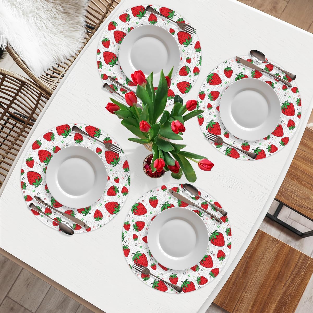 Hsnar 15 inch Braided Placemats Round for Dining Tables1. Made from polyester clear fine thread and high quality polypropylene with knitting process, the placemats washable are sturdy, stain resistant, wrinkle resistant, heat resistant, long lasting, and non-fading.2. 15 inches in diameter, the place mat can hold any size plates and bowls, suitable for square, rectangular, round, and oval tables.3. These circle placemats can be used for any occasions, indoor and outdoor. Great for home, party, BBQ, restaurant, hotel, cafe, bar, store, etc. They are also great gift for your friends.4. The dining table placemats set of 4 can be placed under plates, cups, pans, hot pots, tableware, vases and ashtrays.5. Our kitchen placemats can block water stains, tea block stains or any other stains, would be the perfect decoration and protection to your dining tables and tea tables.6. Great for table setting decor for any occasions, these dining table placemats are the easiest way to renew your table and meanwhile add a touch of color to your kitchen or dining room.7. The dinner placemats is easy to clean and store. Hand wash in cold water, air dry, can be ironed with a low temperature steam iron. Roll up or lay flat for easy store.Order yours now and experience the difference it makes in your home!