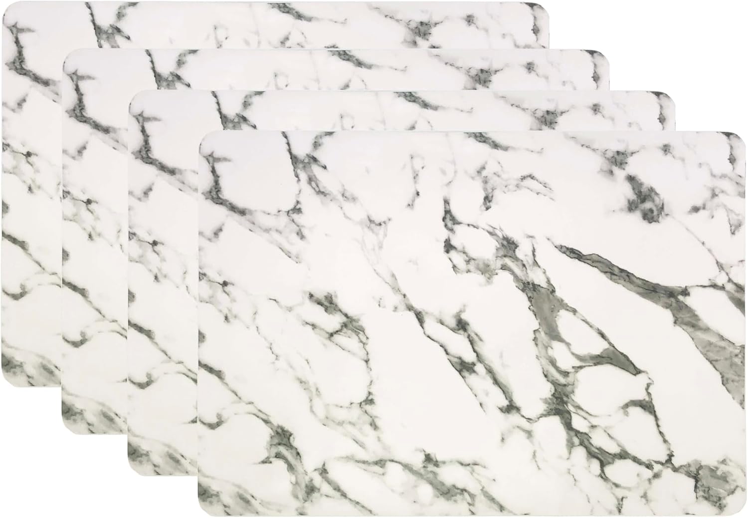 Decorations: When we have dinner with these placemats, they will help keep the table clean, also function as decorations. Great Gifts: Elegant Marble Style Design, Perfect for your daily use and great gifts for Birthday, Christmas, Fathers Day, Mothers Day, Thanksgiving. Features: Package: 6 Pcs Placemats You Will Get. Material: Durable Faux Leather, Both Sides Can Be Used. Size: 17 x 12 In (43 x 30 cm). Note: Please don't wash them by machine. Don't expose to the sun for long time