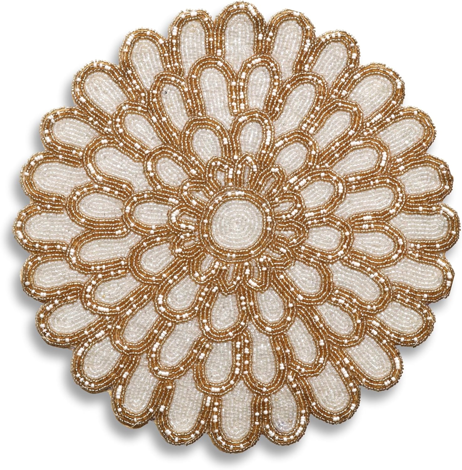 Bring elegance and sparkle to your dining table with these beautiful beaded placemats, handcrafted by skilled women artisans in India. Each round beaded placemat is intricately designed to add charm and festive cheer to your decor. Ideal as beaded christmas placemats, they serve perfectly as table décor, centrepieces, or gift items. These beaded placemat sets create a warm, stylish accent for any occasion — from everyday meals to holiday gatherings. A perfect home décor and gifting choice that enhances every table setting beautifully.