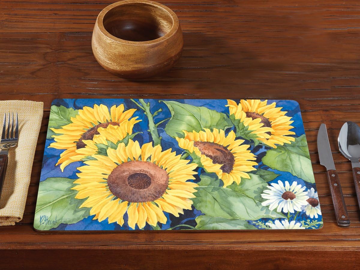 These CounterArt Hardboard placemats feature beautiful designs that will add a festive style to your dining table. These table mats are produced with a 3/16 inch thick hardboard substrate that is finished with a soft cork backing with sealed, natural edges. The lacquered top surface is moisture and stain resistant, allowing for spills to be wiped clean with a damp cloth. Durable for lasting wear, these placemats come packed in a set of two and can be used for casual or elegant place settings, for outdoor dining, or on the buffet. Look for additional CounterArt coordinating kitchen items to create a theme for your home. Mats measure 15-3/4 inches 11-1/2 inches.