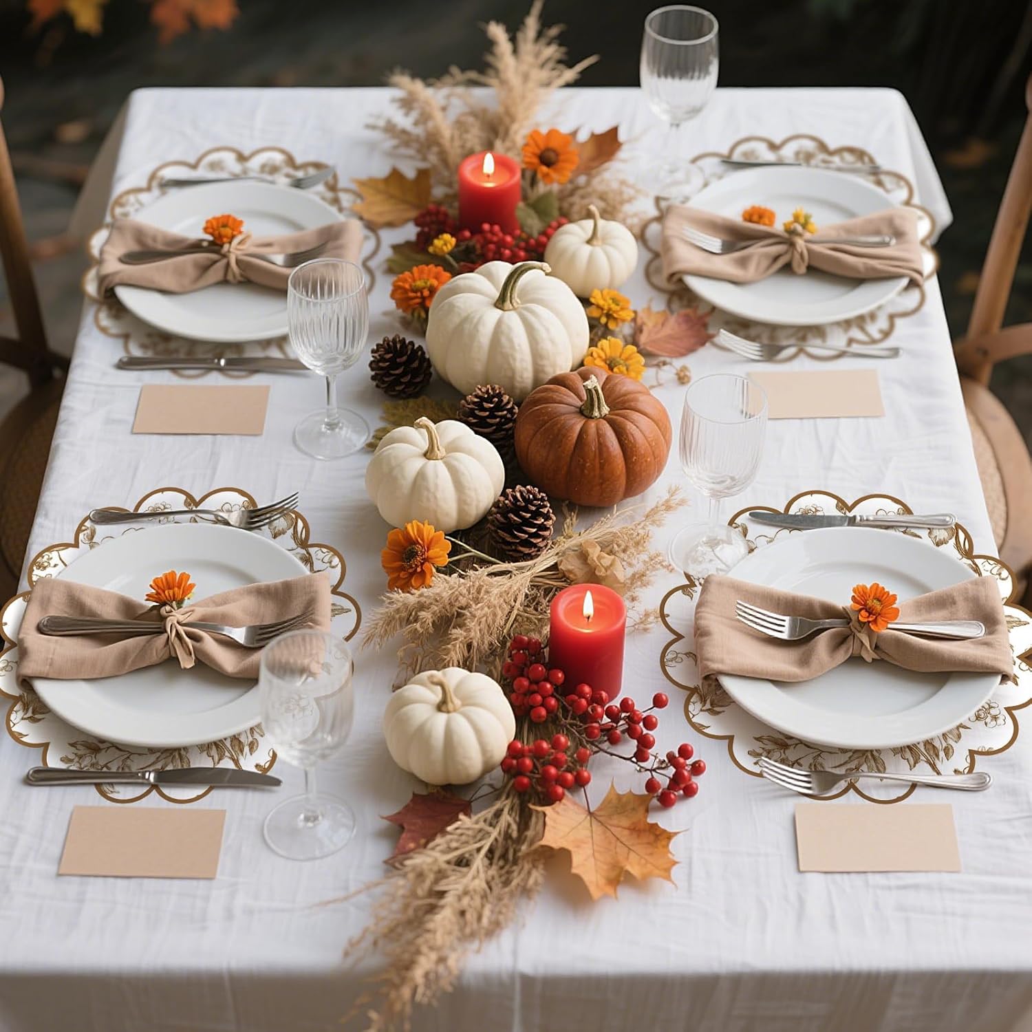 Features:These floral placemats are perfect for everyday dining, holiday gatherings, parties, bridal showers, or special events. The neutral brown tones and floral pattern accents easily enhance the overall atmosphere for both casual and formal occasions.Add a touch of timeless charm to your table with these disposable placemats. The delicate brown floral and leaf pattern adds a touch of natural harmony and classic elegance to any meal or event.Specifications:Material: PaperColor: BrownSize: Approximately 15 inches/38 cm in diameterPackage Included:100 x floral placematsNotes:Due to manual measurement, there may be some errors in size.Due to different screen displays, colors may vary slightly.