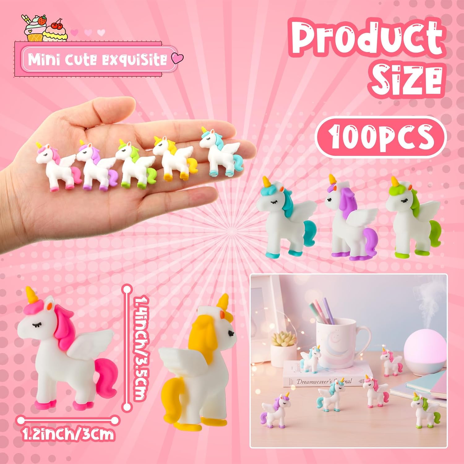 | Included Components | 100 × mini unicorn figurines |