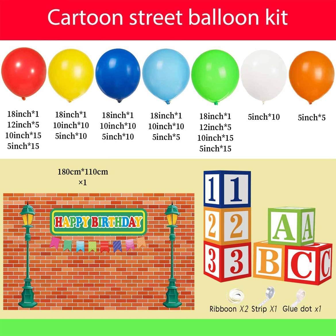 This is a cartoon themed birthday decoration kit, ideal if you are planning a cartoon abc themed party.Package Includes:Balloon:145 pcsBackdrop:1 pcs birthday backdrop Box:6 pcsSize:Balloon:12inch/5inchBackdrop:5.9*3.6ft(70.8 inch height x 43.3 inch width)Material:Balloon:LatexBackdrop:VinylBox:Stiff paperSatisfied Service Guaranteed:Contact us for any concern if you are not satisfied with our birthday decorations box.we will offer you a satisfactory solution.Buy it,safely