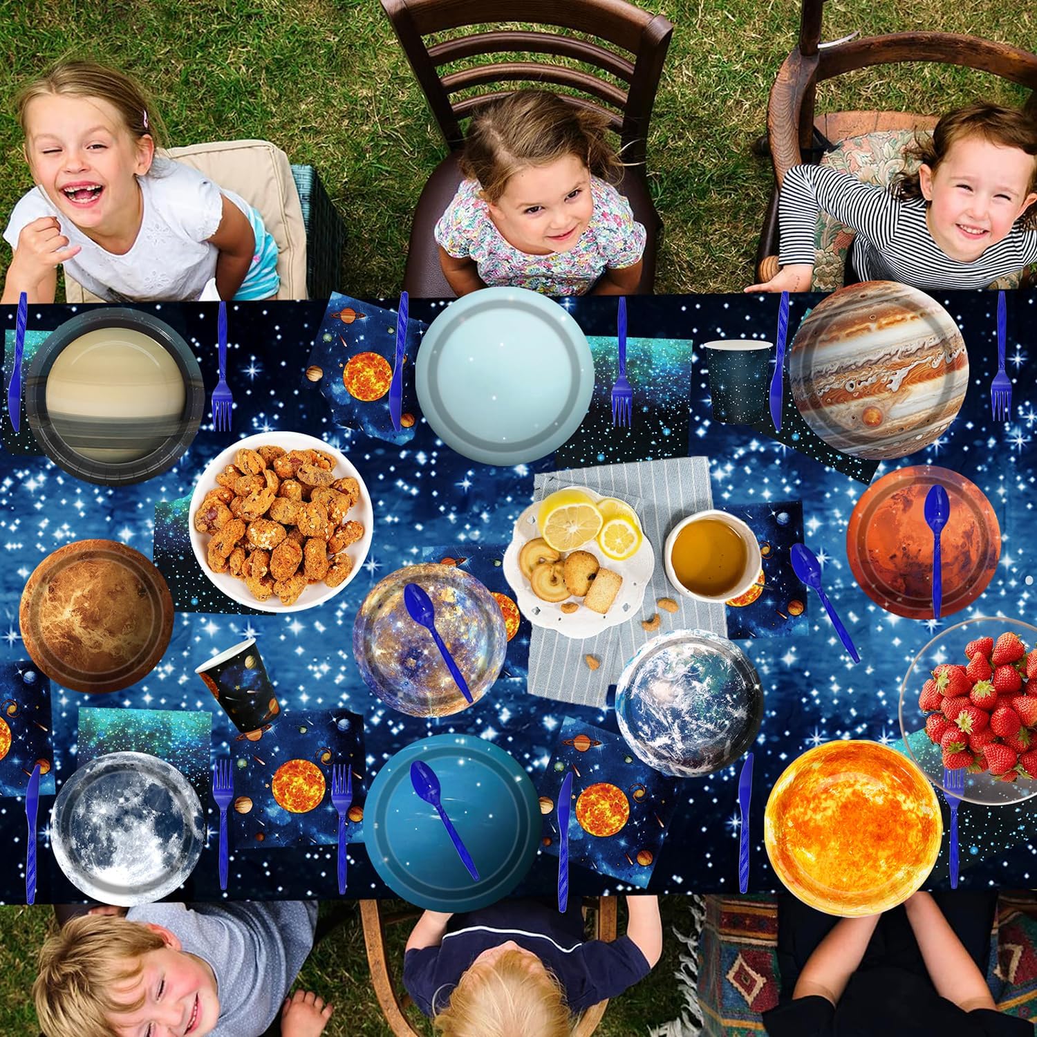 | Included Components | Space banner plates napkins forks knives spoons tablecloth |