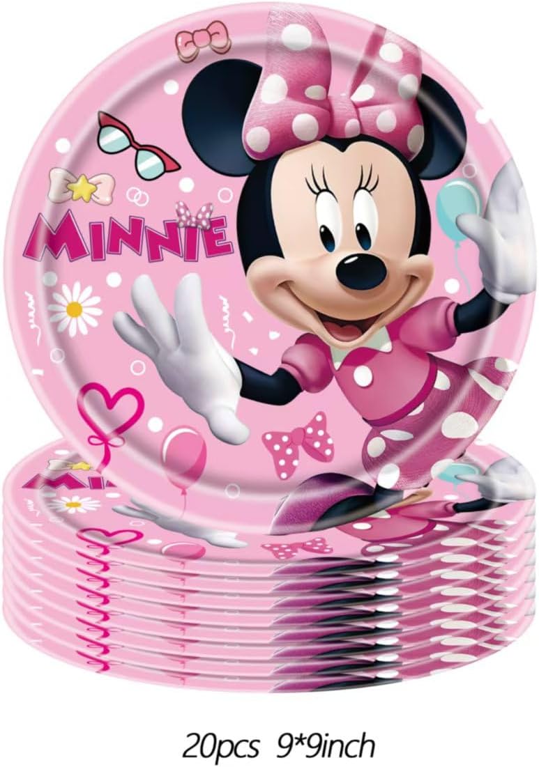 88 Psc Minnie Birthday Party Supplies Set, Pink Theme, with Banner, Plates, Cups, Utensils, Napkins, Tablecloth