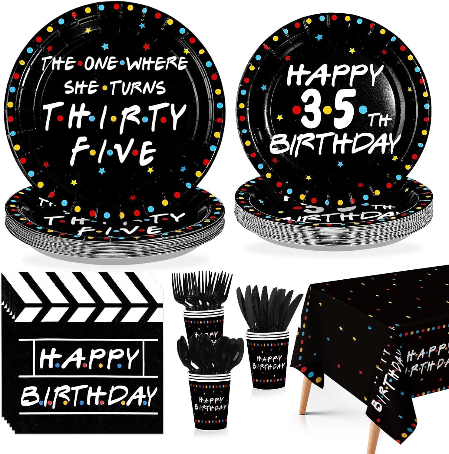 170 Pcs Hot Pink and Black Birthday Party Supplies Hot Pink Plates and Napkins Cups Forks Tablecloth Pink and Black Party Supplies for Girls Women Birthday Bridal Shower Decoration Serves 24