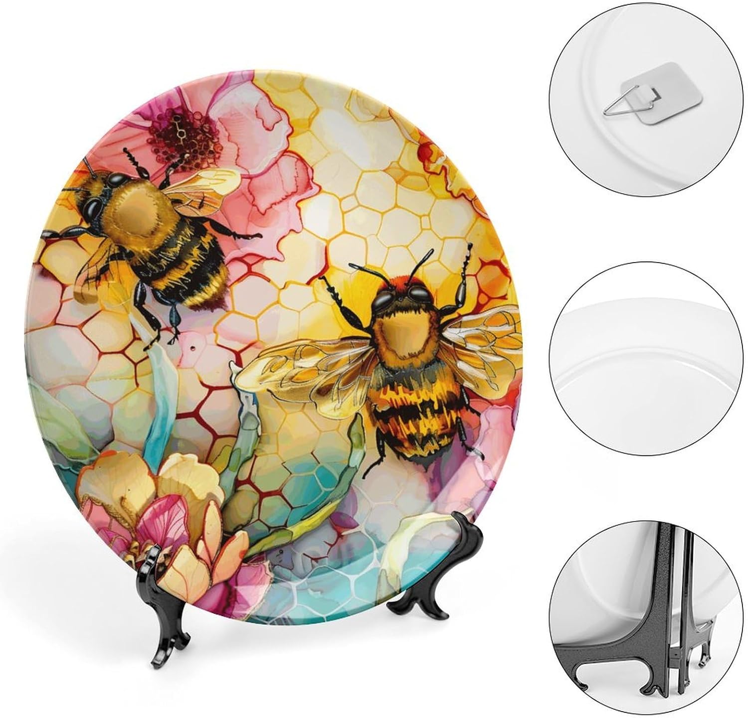 GOKAYS DECORATIVE PLATEDo you feel that your table is monotonous? Then use our decorative plate to add a little fun to the monotony of life.FEATURESSIZE - 7 Inch diameterMATERIAL - CeramicDESIGN - Bees And Honey Combs Bright ColorPACKAGE - 1 x Ceramic Decorative Plate, 1 x Stand, 1 x PothookWHY CHOOSE GOKAYS DECORATIVE PLATES?ADVANTAGEAs Manufacturers We Follow Current Trends and Bring You the Latest Home Fashion. No dye substance harming the health of you and your family, and more than 1300 high temperature fired in the kiln, never fade color. Ideal for placement at home or in the office. Traditional porcelain making technology, fine workmanship. It is a good gift for family and friends.CONVENIENT TO USEOur decorative plate rack for display has 2 ways to use, you can just place the bracket base on a flat surface first, and then put the plate on it, also you can stick the provided pothook at the back of the plate, and then stick the plate on the wall, you can choose the suitable installation method according to the actual situation.OCCASIONOur ceramic plate is a perfect decorative and collection for any niche, table, or mantle at your home. Perfect for your office, home, living room, dining room, playroom, kids room, kitchen, cafe, study, studio, club, bar, and others.IN A SURPRISE FOR YOUR FAMILY AND FRIENDS!It's a perfect gift for any person in your life. You can give it directly to your lover as Mother's Day Gift/Father's Day Gift/Birthday Gift/Christmas Gift/Valentines Day Gift/Anniversary Gift/Wedding Gift/Housewarming Gift/New Home Gift.Start with our funny decorative plate, refresh your rooms!