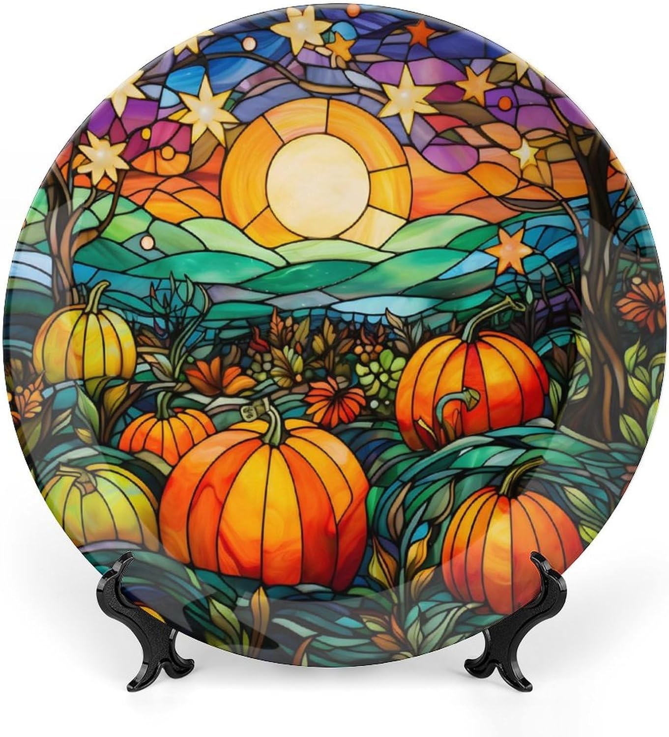 GOKAYS DECORATIVE PLATEDo you feel that your table is monotonous? Then use our decorative plate to add a little fun to the monotony of life.FEATURESSIZE - 8 Inch diameterMATERIAL - CeramicDESIGN - Thanksgiving Deer in Fall Woodland Vibrant Stained Glass PrintPACKAGE - 1 x Ceramic Decorative Plate, 1 x Stand, 1 x PothookWHY CHOOSE GOKAYS DECORATIVE PLATES?ADVANTAGEAs Manufacturers We Follow Current Trends and Bring You the Latest Home Fashion. No dye substance harming the health of you and your family, and more than 1300 high temperature fired in the kiln, never fade color. Ideal for placement at home or in the office. Traditional porcelain making technology, fine workmanship. It is a good gift for family and friends.CONVENIENT TO USEOur decorative plate rack for display has 2 ways to use, you can just place the bracket base on a flat surface first, and then put the plate on it, also you can stick the provided pothook at the back of the plate, and then stick the plate on the wall, you can choose the suitable installation method according to the actual situation.OCCASIONOur ceramic plate is a perfect decorative and collection for any niche, table, or mantle at your home. Perfect for your office, home, living room, dining room, playroom, kids room, kitchen, cafe, study, studio, club, bar, and others.IN A SURPRISE FOR YOUR FAMILY AND FRIENDS!It's a perfect gift for any person in your life. You can give it directly to your lover as Mother's Day Gift/Father's Day Gift/Birthday Gift/Christmas Gift/Valentines Day Gift/Anniversary Gift/Wedding Gift/Housewarming Gift/New Home Gift.Start with our funny decorative plate, refresh your rooms!