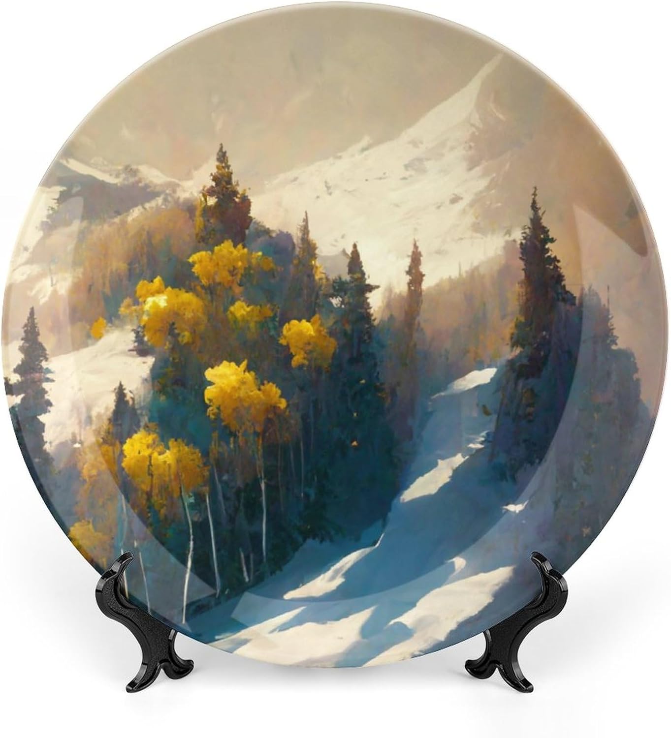 GOKAYS DECORATIVE PLATEDo you feel that your table is monotonous? Then use our decorative plate to add a little fun to the monotony of life.FEATURESSIZE - 8 Inch diameterMATERIAL - CeramicDESIGN - Autumn Landscape with Beautiful Sky PaintingPACKAGE - 1 x Ceramic Decorative Plate, 1 x Stand, 1 x PothookWHY CHOOSE GOKAYS DECORATIVE PLATES?ADVANTAGEAs Manufacturers We Follow Current Trends and Bring You the Latest Home Fashion. No dye substance harming the health of you and your family, and more than 1300 high temperature fired in the kiln, never fade color. Ideal for placement at home or in the office. Traditional porcelain making technology, fine workmanship. It is a good gift for family and friends.CONVENIENT TO USEOur decorative plate rack for display has 2 ways to use, you can just place the bracket base on a flat surface first, and then put the plate on it, also you can stick the provided pothook at the back of the plate, and then stick the plate on the wall, you can choose the suitable installation method according to the actual situation.OCCASIONOur ceramic plate is a perfect decorative and collection for any niche, table, or mantle at your home. Perfect for your office, home, living room, dining room, playroom, kids room, kitchen, cafe, study, studio, club, bar, and others.IN A SURPRISE FOR YOUR FAMILY AND FRIENDS!It's a perfect gift for any person in your life. You can give it directly to your lover as Mother's Day Gift/Father's Day Gift/Birthday Gift/Christmas Gift/Valentines Day Gift/Anniversary Gift/Wedding Gift/Housewarming Gift/New Home Gift.Start with our funny decorative plate, refresh your rooms!