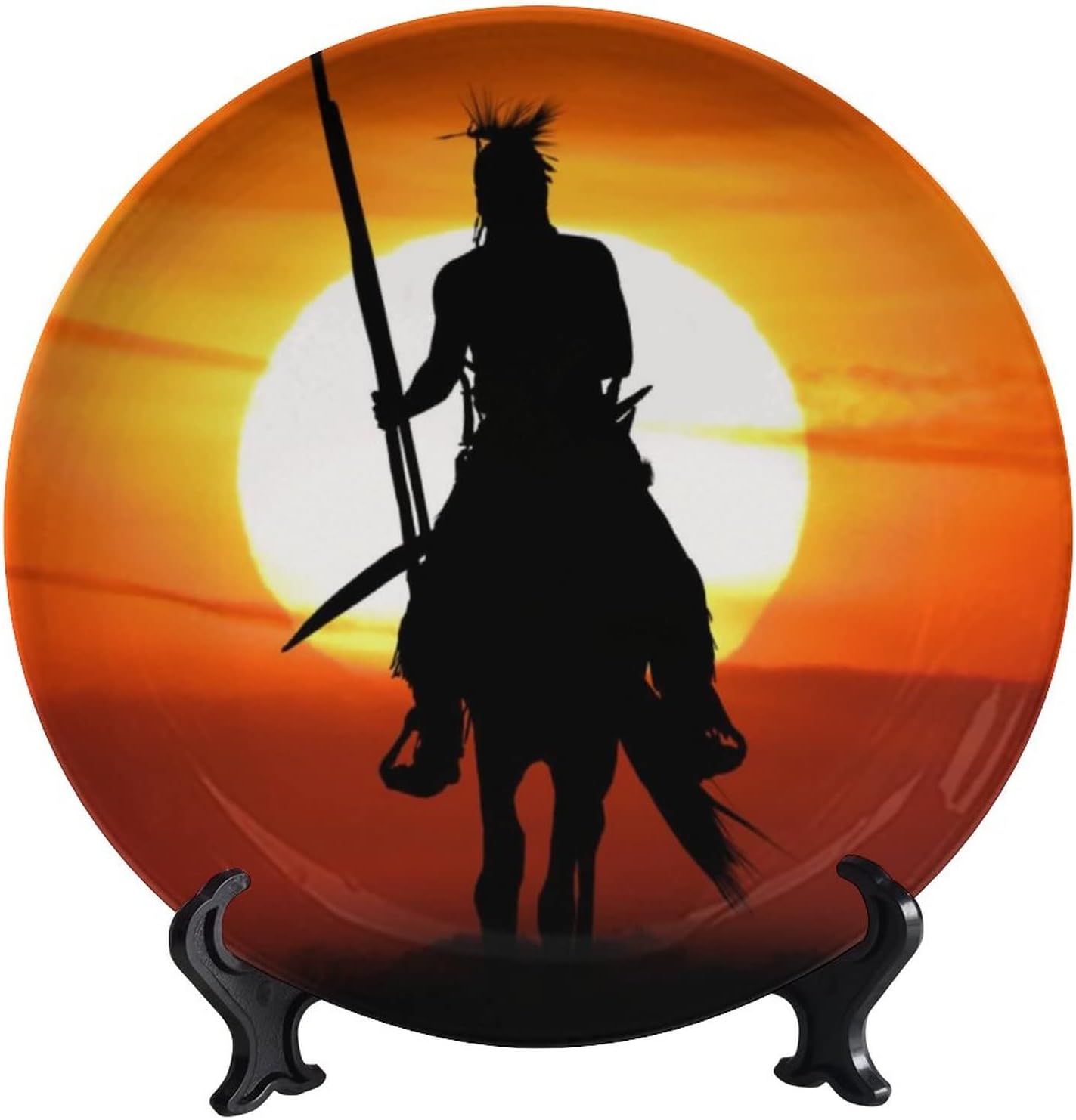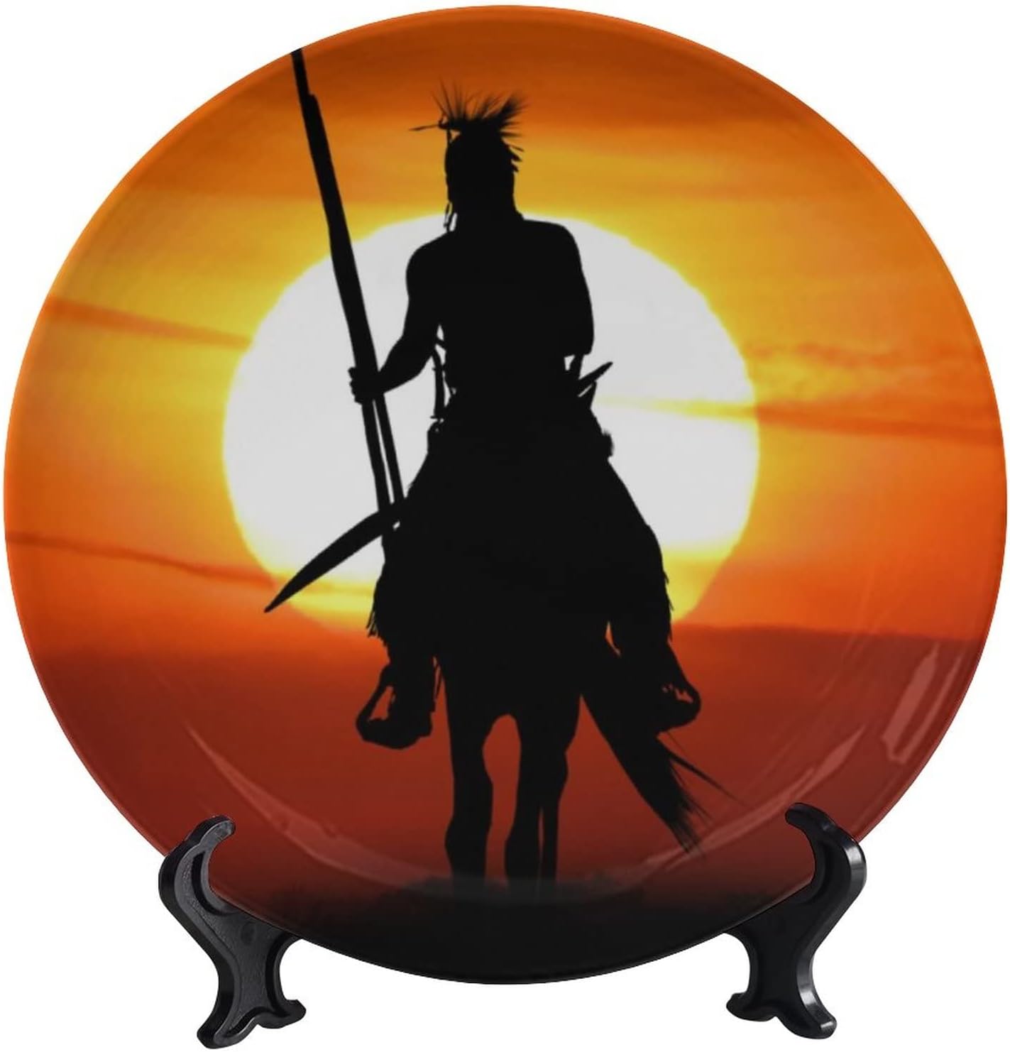 The Warrior Sunrise Print Ceramic Decorative PlatesCeramic Plates Size: 8inchAccessory Structure: Hook Attachment Included for Wall Hangings. Display Stand Included with Each Plate. Individually Boxed For Safe Delivery.Start with These Fun and Decorative Plate, Refresh Your Rooms!Exclusive Design: The Sunflower Patterns are Beautiful and Chic.With Natural Colors and Texture to Create a 3 Dimensional Design Come to Life. Art Print Design. They are Worth Sharing with Your Friends, Showing Your Personality.Applicable Scene: This Beautiful Plate is a Perfect Decorative for Any Niche, Table, or Mantle at Your Home. Perfect for Your Home, Office, Playroom, Kids Room, Cafe, Study, Studio, Club, Bar, and Others. Collectible Souvenir, Perfect Size to Display in a Cabinet, Shelf Arrangement, or Side Table.Gift Selection: Art Print Design, Beautiful Pattern, is a Great Choice for Birthdays, Valentine's Day, Mother's Day, Father's Day, Thanksgiving, Easter, Christmas. They Will be Shocked by the Superior Quality of The Item When They Open The Present. Customized, Personalized Products are Very Popular. As Manufacturers We Follow Current Trends and Bring You the Latest Home Fashion.NOTE: The Digital Images We Display Have The Most Accurate Color Possible. However, Due to Differences in Computer Monitors, We Can't be Responsible for Variations in Color Between The Actual Product And Your Screen. We Suggest That You Hand Wash The Ceramic Plates.Satisfaction Guaranteed: We Offer Free Replacement or Full Refund If You are Not Fully Satisfied with Our Ceramic Plates. Leave us your Feedback if You're Happy with Your Purchase!