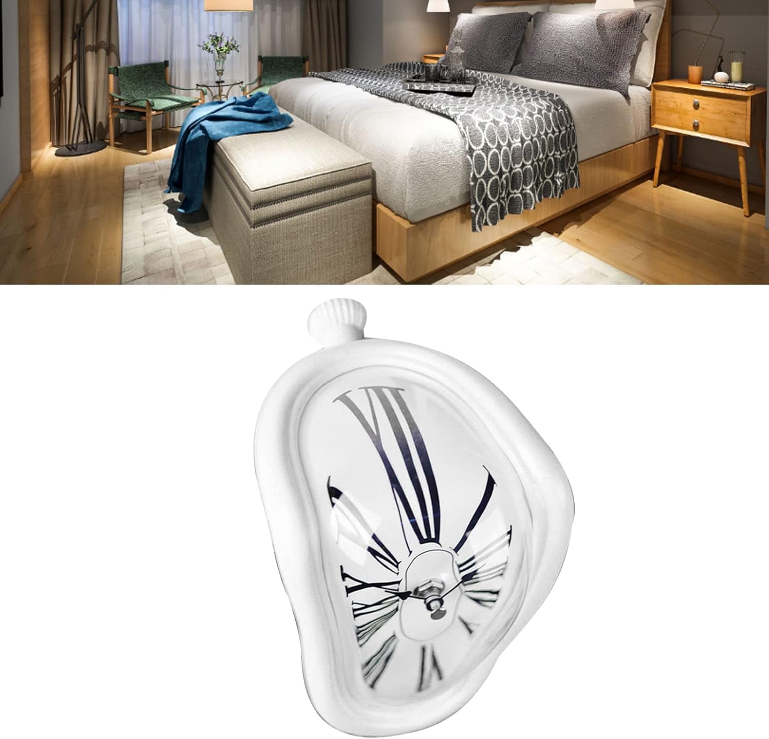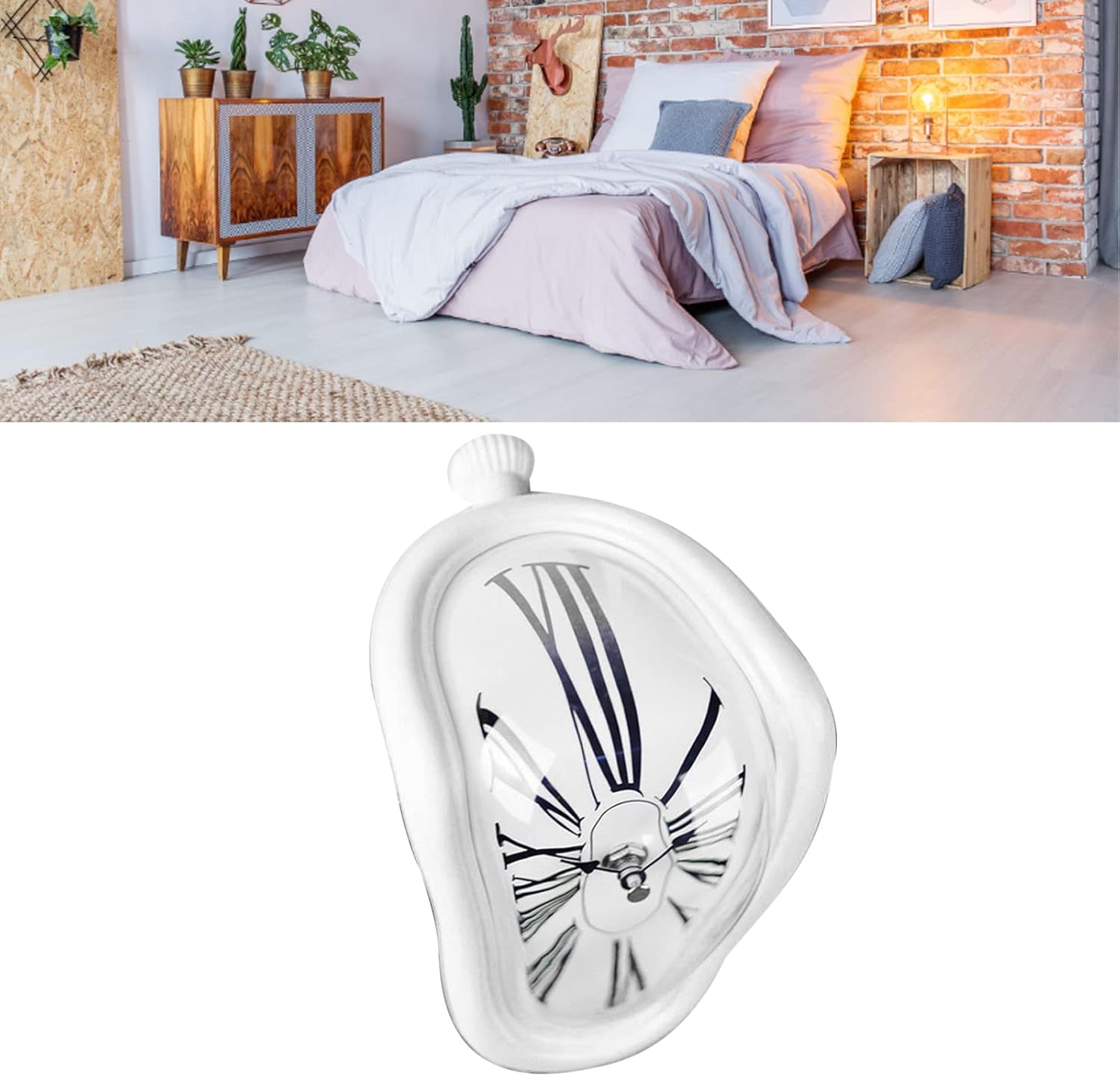 Specification: />Item Type: Melting Clock />Material: Plastic />Weight: Approx. 250g / 8.8oz />Size: Approx. 145 x 175 x 115mm / 5.7 x 6.9 x 4.5in />Package List />1 x Melting Clock />Note