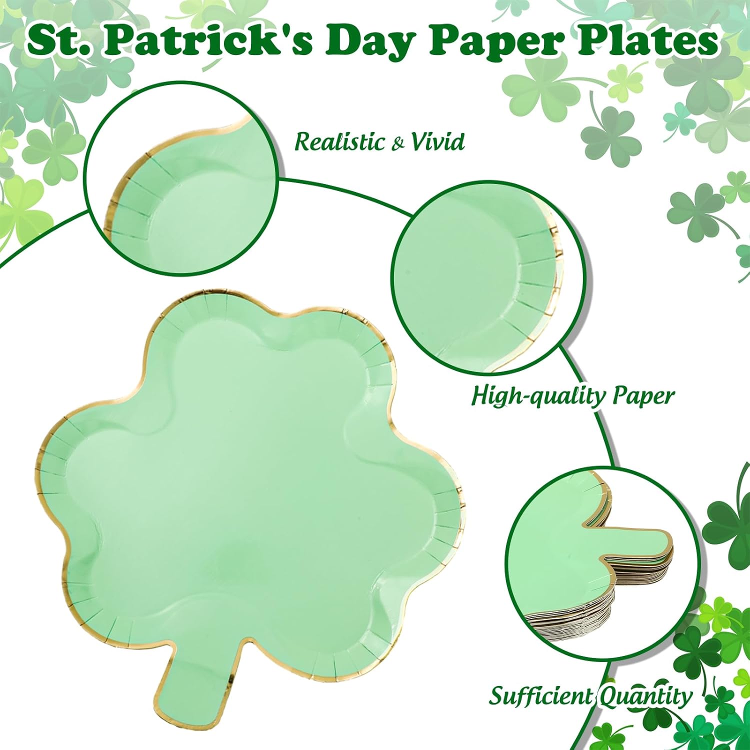 Features: Festive printings: Our paper plate are designed in St. Patrick’s Day theme, mainly in mint green, very eye-catching and practical. Wide range of use: Hard to tear off, large enough to put many kinds of snacks or fruits, suitable for birthday, picnic, St. Patrick’s Day party and other occasions. Specifications: Size: 9 inch, 10.3 inch Material: paper Package includes: 50 x Paper Plate